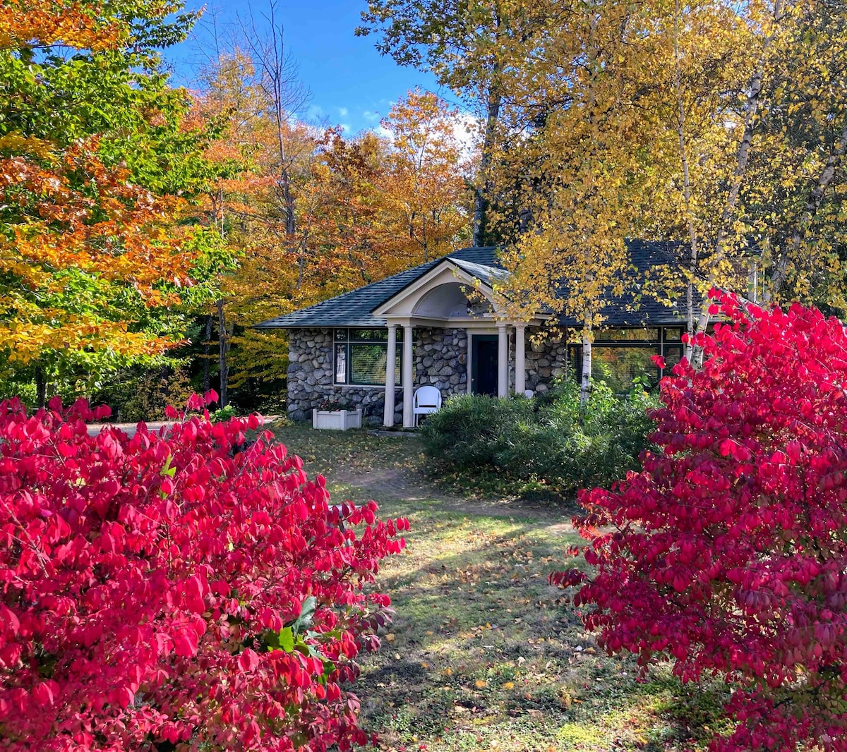 Kral çarpayısı, tam mətbəx, hamam, qonaq sahəsi və camaşırxana ilə bəzədilmiş geniş ikinci hekayə postu və şüa otağı. Qonaq evi dağ mənzərəli 40 hektarlıq səhrada yerləşir və əmlakda gəzinti yolları var. Daş Dağ İncəsənəti Mərkəzindən cəmi iki mil məsafədə, Fryeburq kəndindən 15 dəqiqəlik məsafədə və qonşu Şimali Konvey şəhərinə cəmi 25 dəqiqə məsafədə yerləşir. Bütün mövsümlər üçün əla istirahət yeri. Televizor, Yüksəksürətli İnternet, Kondisioner, İstilik, Tavan Ventilyatorları, Yeni Tikili.