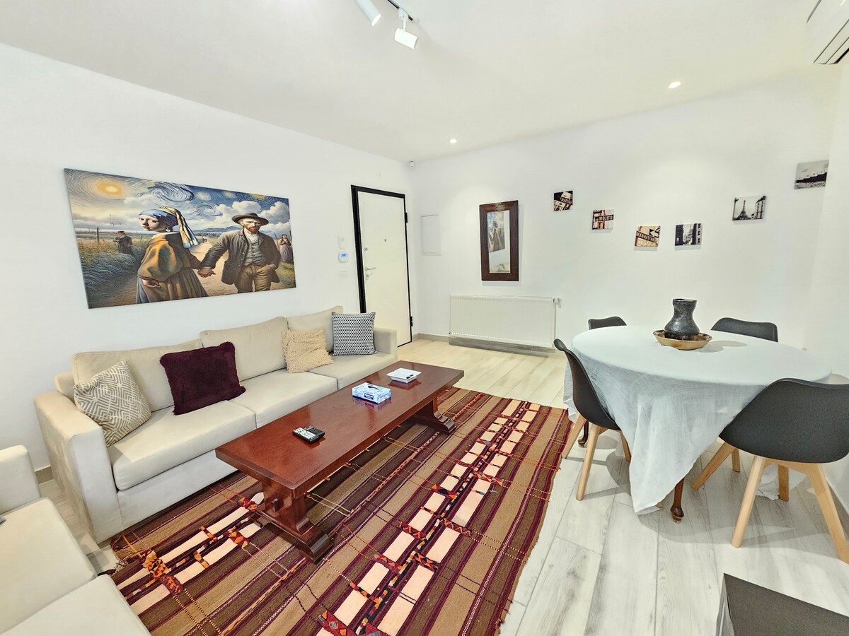 2022-ci ildə tikilmiş bu heyrətamiz müasir mənzildə qeyri-adi bir qonaqlama yaşayın. təhlükəsizlik, zəriflik və rahatlığı özündə birləşdirən lüks yaşayış yerinin 1-ci mərtəbəsində yerləşir. Əla mövqeyi sayəsində zərif və yüksək səviyyəli şəraitdə qonaqlayaraq yerli mağazalardan, restoranlardan və turistik yerlərdən asanlıqla zövq ala bilərsiniz. 4 nəfərə qədər qonaq yerləşdirə bilən bu məkan ailə, dostlar və ya cütlük üçün mükəmməldir.