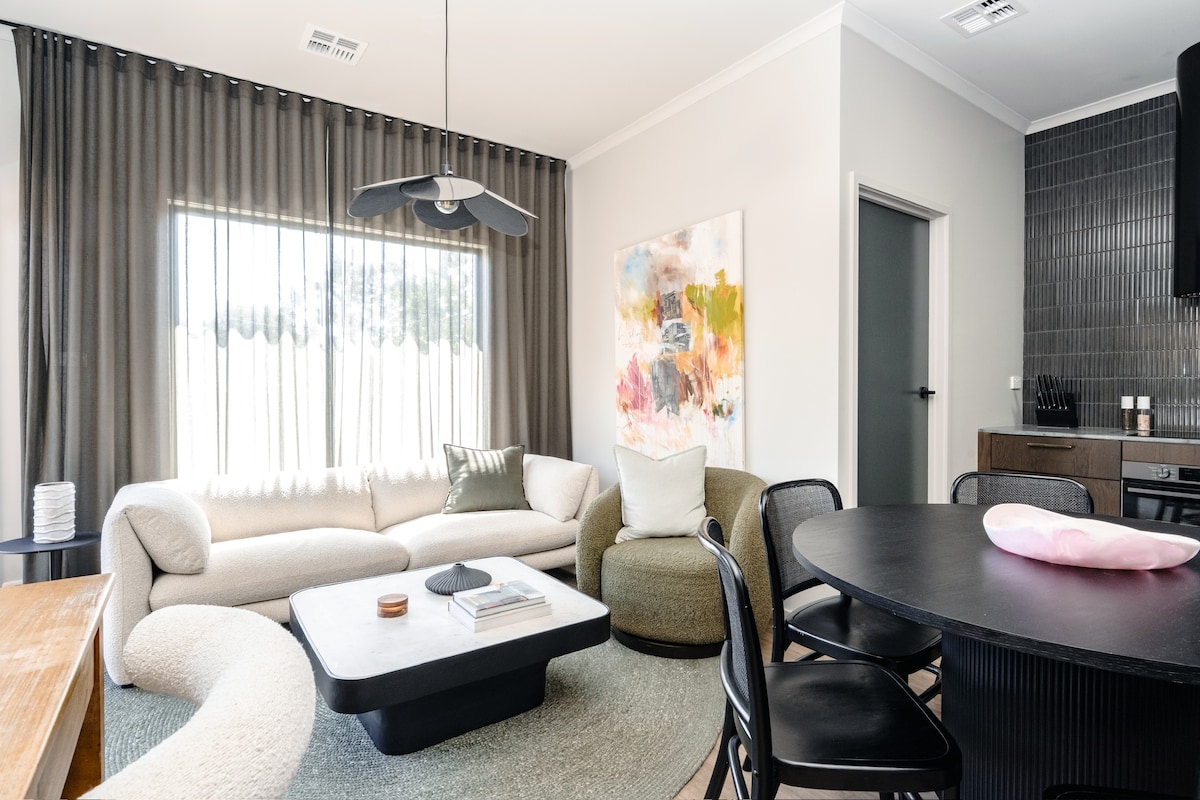 5 hektarlıq Pialligoda üzüm tənəkləri arasında yerləşən lüks təyin edilmiş işıqla dolu bir yataq otağı mənzili, bu mənzilin Parlament Evinə mənzərəsi var və Kanberra şəhərinə cəmi 8 dəqiqəlik, hava limanına isə 3 dəqiqəlik məsafədədir. Dadlı yerli məhsullar və beş ulduzlu mətbəx təklif edən Rodneys Nursery Cafe, Beltana Farm, Lale Cafe və ya Vibe Hotel-ə qısa bir gəzinti. Şəhərdəki ölkənin dadı. Qaz buxarı, Ağıllı TV, Wi-Fi və Miele sobası, qəhvə maşını, mikrodalğalı soba, çaydan, toster və tam ölçülü soyuducu daxil olmaqla tam təyin edilmiş mətbəx də daxil olmaqla gözəl təchiz edilib. Qonaqlar pendir, peçenye, şərab – qırmızı, ağ və tərtəmiz, çörək, süd, şirin peçenye, taxıl, pulsuz çeşidli toyuqlarımızdan təzə qoyulmuş yumurta – Meqqi, Pivə və Oprah və ürəyiniz istəyən hər hansı çay ilə qarşılanacaq. İki cür hamam otağına MOR şampunu, saç kremi, bədən yuma, bədən losyonu və sabunla bağlı əyləncələr daxildir. Bəzi vacibləri unutmuş ola biləcək şəxslər üçün ağız yuma, diş fırçası, diş pastası, duş qapağı, səyahət dəsti (tikiş ehtiyacları ilə) və hətta təraş dəsti var.