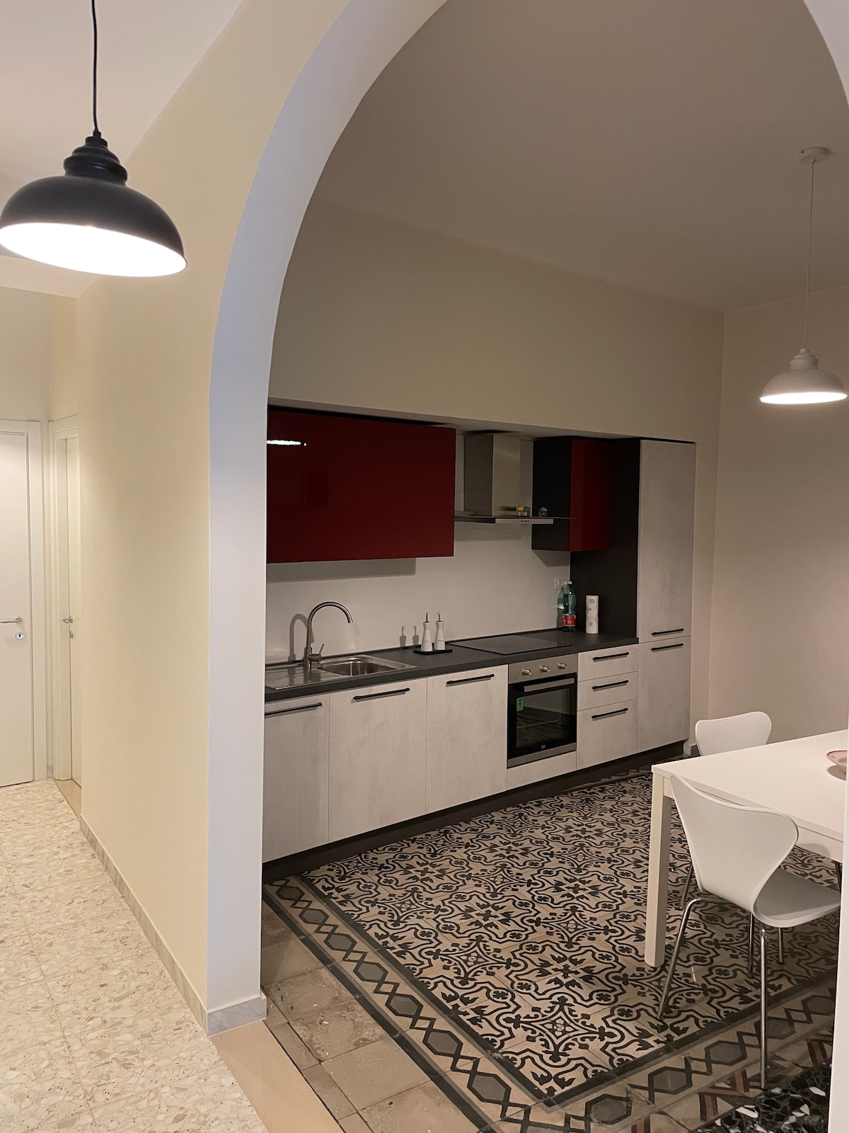 İşgüzar səfərlər və turizm üçün ideal olan Kampobasso mərkəzindən piyada məsafədə məftunedici gözəl təmirli mənzil. Via XXIV Maggio-da 2-ci mərtəbədə yerləşən və əlillər üçün yolu olan mənzil girişdən, ikinəfərlik divan çarpayısı və televizoru olan böyük qonaq otağından, ikinəfərlik çarpayı və televizoru olan yataq otağından, birnəfərlik çarpayısı və televizoru olan böyük ikinəfərlik yataq otağından, mətbəxdən və iki hamam otağından ibarətdir. Onlardan birində paltaryuyan maşın var. Bütün otaqlar pulsuz Wi-Fi və kondisionerlə təchiz olunub.