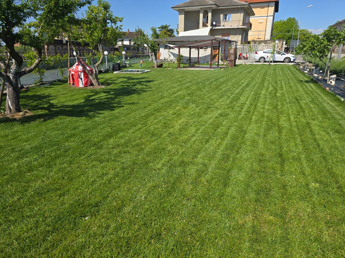 Casa indipendente accogliente e spaziosa, ideale per famiglie, gruppi di amici o lavoratori in trasferta fino a 9 ospiti. • 2 camere da letto molto spaziose • 3 bagni totali • camera 1 con bagno privato • camera 2 composta da 2 ambienti comunicanti con bagno in comune • 1 terzo bagno di servizio al piano terra , vicino alla cucina Cucina attrezzata, Wi-Fi gratuito, climatizzazione caldo/freddo con pompa di calore. Presente angolo lettura con scrivania. Giardino e cortile privato recintato.