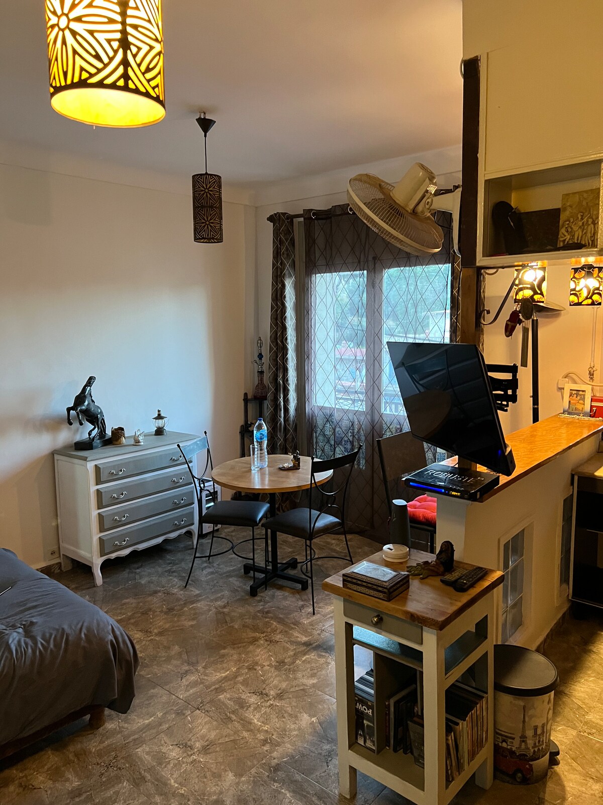 Penthouse en terrasse au sommet d'un bel immeuble Haussmannien au cœur de Bab El Oued avec vue imprenable sur la baie d'Alger et Notre Dame d'Afrique. Ce cocon lumineux comprend chambre spacieuse, cuisine équipée ouverte sur salon et belle terrasse où vous pouvez passez des moments agréables. A moins de 5mn de la station du métro "Place des Martyrs" avec tous commerces à proximité. Pour les enfants, piscine Kettani accessible l'été face à la mer, & plage ! Entrée immeuble: sécurisée avec badge