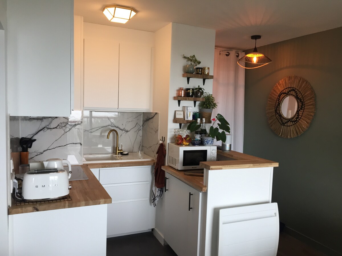 Salam, xoş gəlmişsiniz! Biz Florensiya və Arturuq və 2021-ci ildən bəri Pornichetdə yaşayırıq. Uzaqda olduğumuz zaman gözəl 30 m2 studiyamızı və onun 8 m2 terrasını möhtəşəm okean mənzərəsi ilə birlikdə icarəyə veririk. Bizimlə hər şey sadədir və hər şey yaxındır: şəhər mərkəzi, onun barları, restoranları və qatar stansiyası 6 dəqiqəlik piyada məsafədədir, çimərlik və dəniz isə tam qarşıda yerləşir! Gəlin və zövq alın 🙂