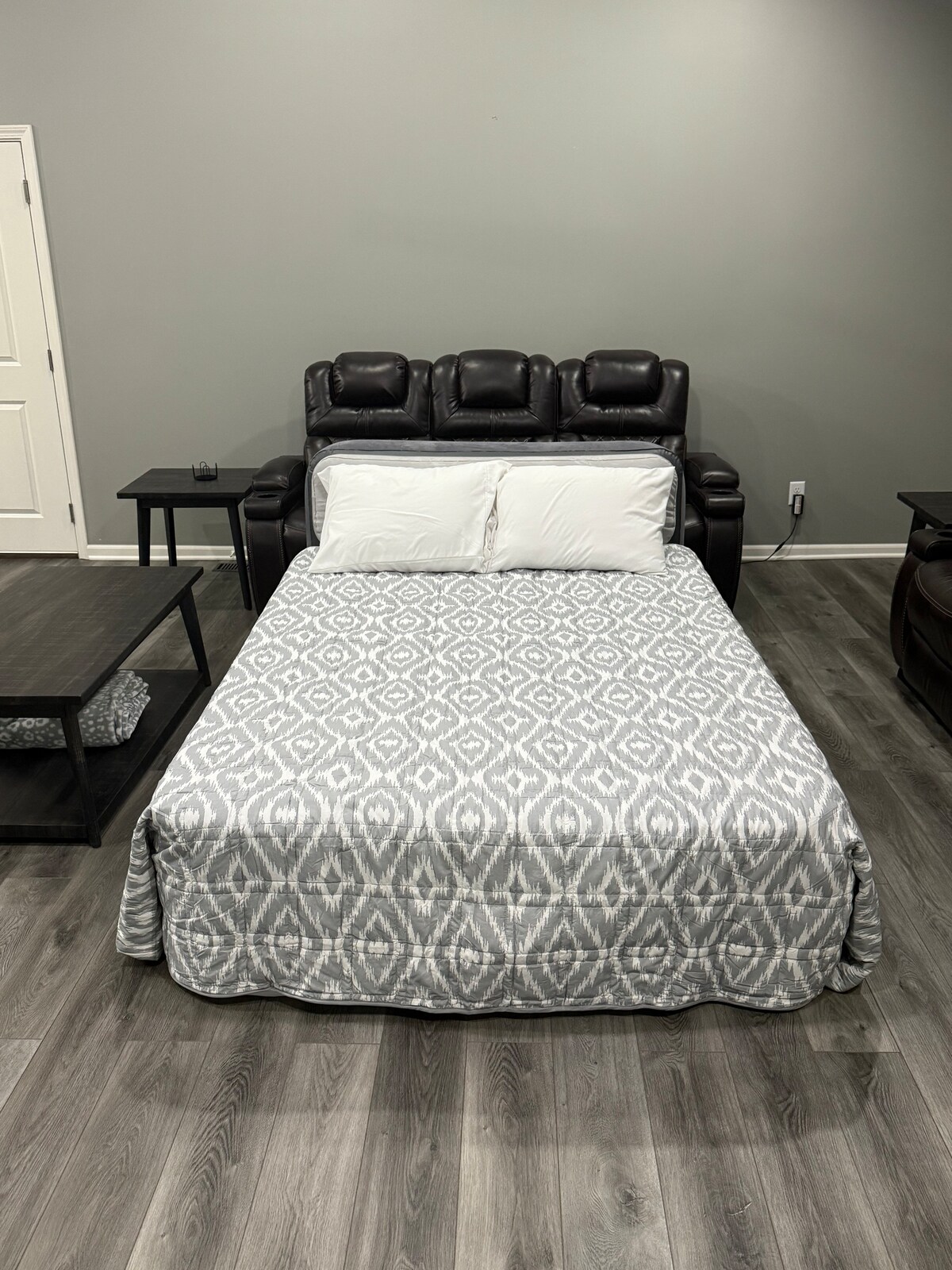 ABŞ-ın Harrisonvil şəhərindəki müasir istirahət məkanınıza xoş gəlmisiniz! Gözəl şəkildə yenidən qurulmuş 3 yataq otaqlı, 2 hamamlı evdə qranit piştaxtaları və valehedici kafel duşu olan açıq tərtibat var. Əsas nömrədə çarpayı və vanna var. Yataq otağı 2 150-179 sm-lik çarpayı təklif edir, 3 yataq otağında isə çoxmərtəbəli çarpayı var (altda kral, üstdə kraliça). 9 və ya 10 nəfərlik qruplar üçün kraliça hava döşəyi mövcuddur. Hər otaqda 75" ağıllı televizor, qarğıdalı deşiyi, od çuxuru, manqal, böyük qaraj və 50" ağıllı televizordan zövq alın.