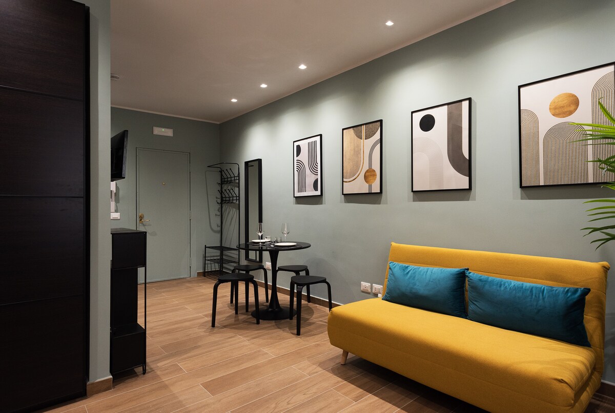Immerse yourself in an elegant two-bedroom, two-bathroom apartment in the heart of historic Naples, just steps from top cultural sites and great restaurants. Enjoy a blend of antique furniture, modern design, and state-of-the-art tech, including a dedicated workspace with a large monitor, a fully stocked coffee machine, a comfortable armchair, high-speed Wi-Fi, and Alexa. Relax in a charming historic building with all the comforts of home