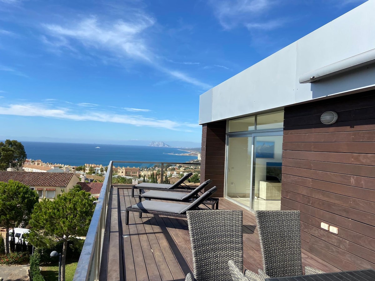 Cəbəllütariq qayasına baxan, Alcaidesa qolf meydançasında nəfəskəsici dəniz mənzərəli yeni tikilmiş mənzil. Tam istirahət üçün mükəmməl olan azure dənizi hər səhər sizi salamlayır. Qış yeniləməsi: şüşə pərdələri balkonda quraşdırmışıq. Qış aylarında belə mənzərələrdən, əlavə məkandan və günəşdən zövq alın.