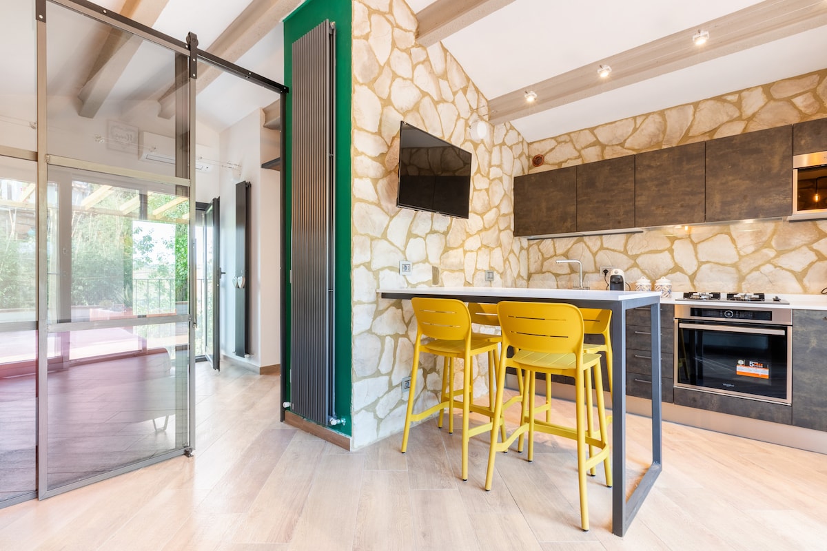 Ən heyrətamiz mənzərələri və cakuzisi, açıq havada duş və qril ilə nəhəng terrası olan gözəl kəndsayağı, tam müasir 1 yataq otağı olan ev. Mükəmməl, ayrıca, dolğun və romantik. Tam təchiz olunmuş mətbəx, kondisioner və mərkəzi istilik sistemi. Ev sizi dəhlizə, ikinəfərlik yataq və duş otağına aparan spiral pilləkənlə yuxarı mərtəbədə divan çarpayısı olan açıq planlı mətbəx, yemək və qonaq otağından ibarətdir. Hər iki səviyyədə terraslar. Meyvə ağacları və möhtəşəm ayrıca terrası olan böyük bağ.