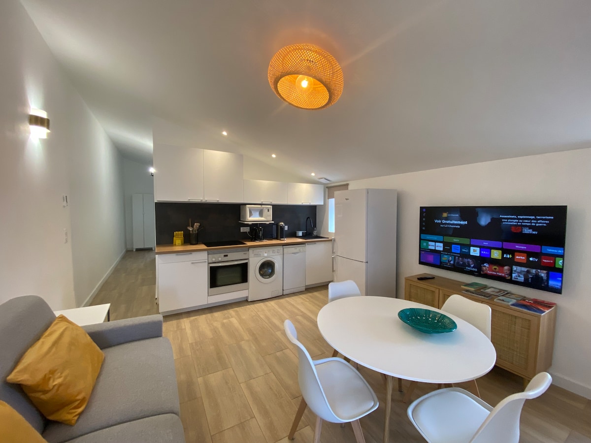Emplacement de qualité la villa bénéficie d’une positon dominante nous louons une partie de notre maison de 50 m2 qui est climatisée. La terrasse surélevée privée avec une magnifique vue un ravissant bassin bali privé non chauffé oscillant entre vert émeraude et lagon bleu admirer le couché du soleil. Vous êtes à 5mn à pied du village et restaurants,5mn en voiture cabane de fruits et légumes..., 10mn des plages et d’Ile Rousse. 🙂LE LOGEMENT N’EST PAS ADAPTÉ à l’accueil d’enfants en bas âge.