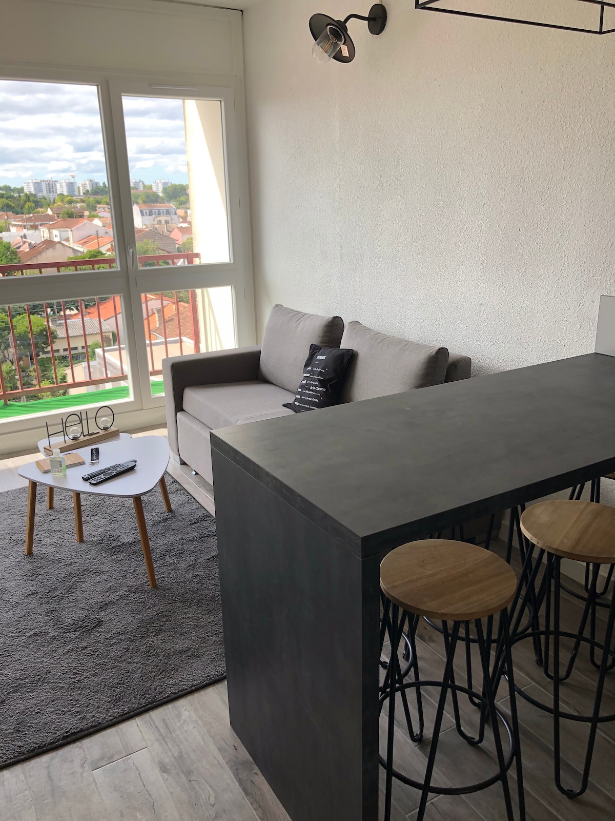Mérignac mərkəzinə, Mérignac-Soleil ticarət zonasına, tramvay xətti olan hava limanına yaxın, 2-ci mərtəbədəki yeni iqamətgahda 24 m² sahəsi olan studiya, avtobusdan 50 m məsafədə A tramvay xətti olan hava limanı. Mebel və məişət avadanlıqları yenidir. Rolik şkafı Döşəkağıları, yorğanları, yastıqları və yorğanı olan 2 nəfərlik 1 150-179 sm-lik çarpayı. Konvertasiya edilməyən 2 nəfərlik kiçik skamya oturacağı Təmizlik məhsulları, tozsoran, dəsmallar, çay dəsmalları, düzləşdirici, saç feni... Lifli Wİ-Fİ. təhlükəsiz velosiped otağı