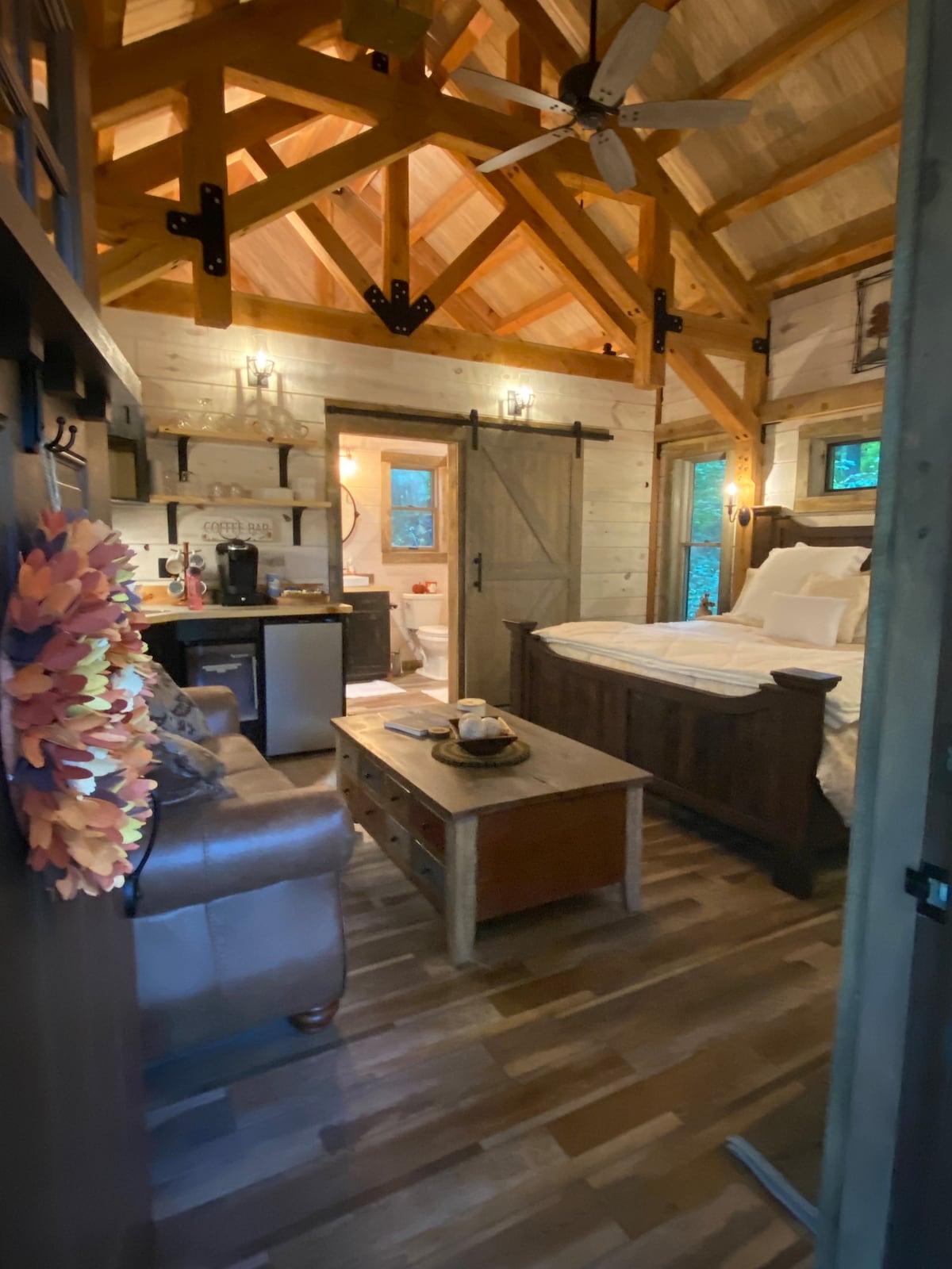 You won’t forget the peaceful surroundings of this rustic destination. Our cabin is close to the Blue Ridge Parkway, Appalachian Trail, and the James River with many outdoor activities within minutes. Our cabin will accommodate 2 people based upon septic system and rules and regulations set by Bedford County . Our cabin is not kid friendly (infant-10 y). Please message us with any questions. Come back from sightseeing or from a hike and relax in the hammock, 6 person hot tub, or by fire pit.