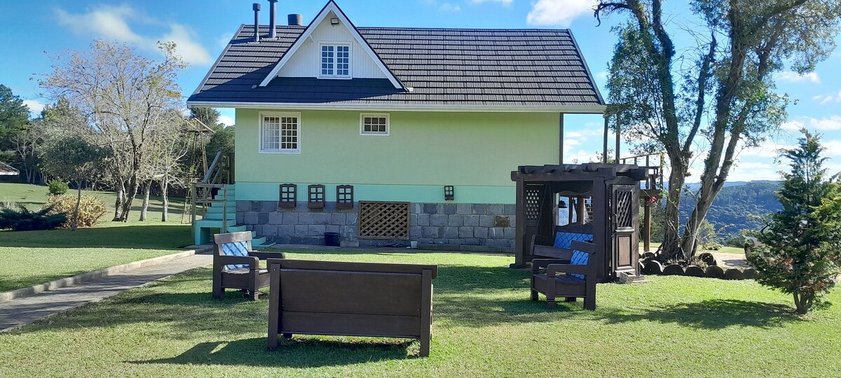 Bu çox sakit, rahat və təbiətə uyğun qonaqlama yerində bütün ailə ilə birlikdə dincəlmək üçün Flores da Cunhada üzüm bağlarının ortasında yerləşən dağ evi. Barbekü, qəhvə, nahar və ya şam yeməyinizi hazırlamağınız üçün qab-qacaqla təchiz olunmuş, Wi-Fi və məxfilik imkanı olan tam və çox yaxşı təchiz olunmuş məkan. Dağ evi dequstasiya təcrübələri təklif edən şərab zavodlarına yaxındır və Flores da Cunha, Mirante Gelain-in ən gözəl görməli yerlərindən cəmi 2 dəqiqəlik məsafədədir.