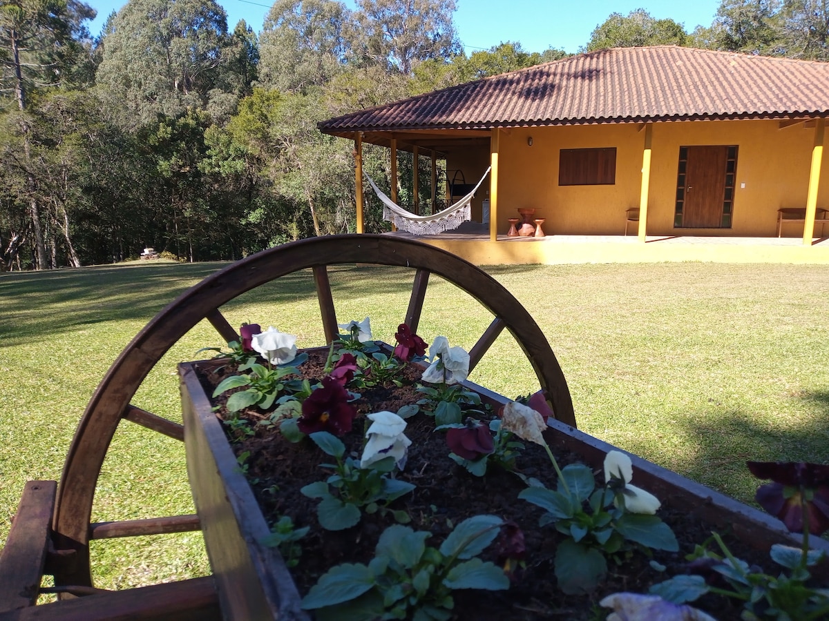 Kasa-de-Kampo, Serra Qaunçada, Feliz və Farroupilha arasında. Arkarialar, karxanalar, şaftalı plantasiyaları arasında yaşayış yerindən daha çoxu, təcrübə. 4 yataq otağı, tam mətbəx, 16 oturacaqlı masa, 2 rahat otaq, 2 hamam otağı (balkonda) və muzeyi var. Televizor və wi-fi var, lakin burada ən yaxşısı təbiət və sizinki ilə əlaqə qurmaqdır. Bura İtaliya koloniyasının tipik evidir. Burada barbekü köşkü, bağ və meyvə ağacları olan veranda var. Ümid edirik ki, bütün ailənizlə birlikdə olacaqsınız!