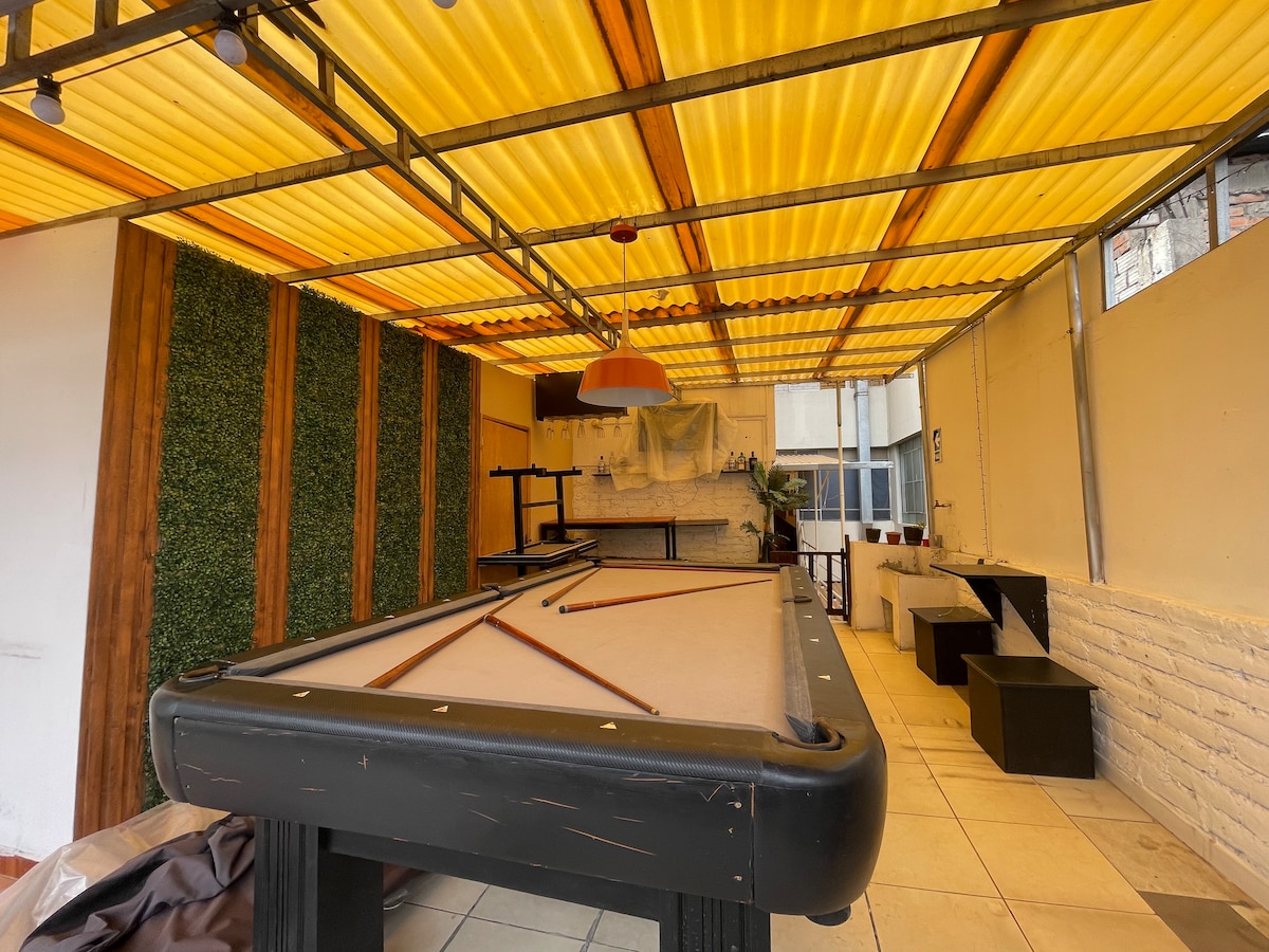 Habitación céntrica con billar, bar y terraza