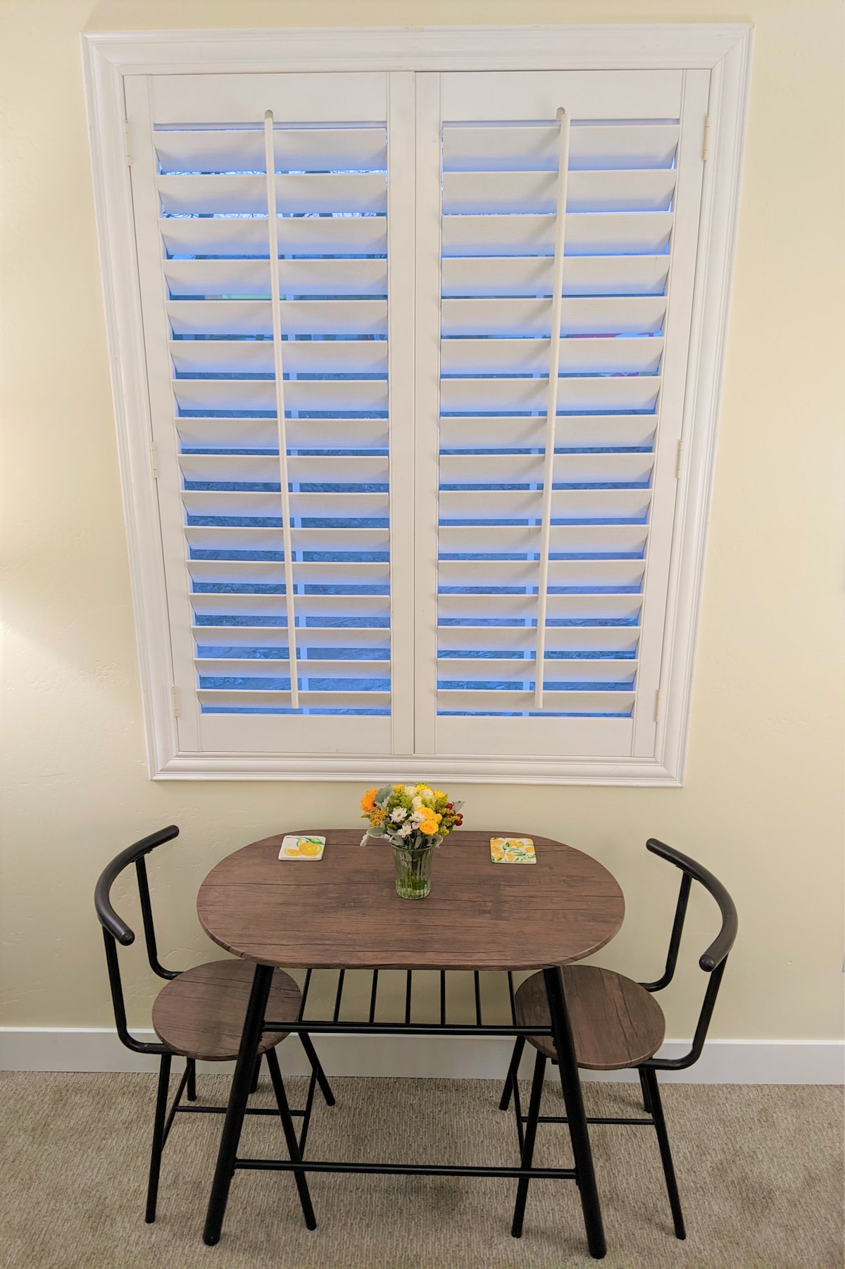 Pristine Private Space! Newly remodeled! New queen bed, comfy linens. Country seclusion, 4 minutes to downtown, private entrance and patio to enjoy the endless red cliffs, the infinite stars at night. Easy parking, no steps or stairs, and thoughtful safety features. Microwave, coffee maker, fridge, dishes, glasses, utensils, snacks, coffee, tea , WiFi, extras. Need more? Ask ! Your hosts, Happy and Kathy, want you to feel at home. If room is booked, try our other room, Bus Stop Inn#2.