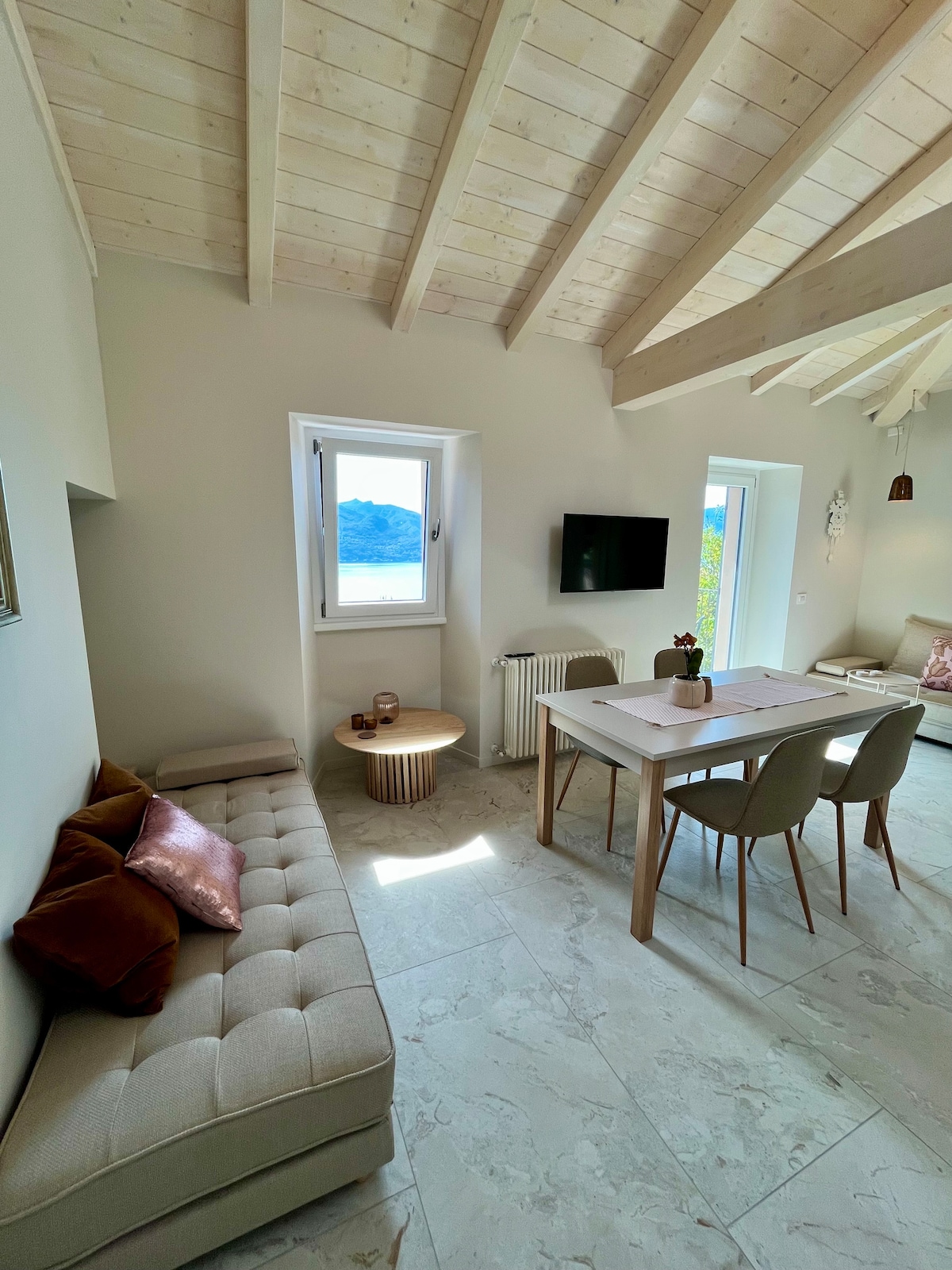 Unobstructed lake views from a beautifully restored 1800s apartment, perfectly positioned on the lakefront promenade of Lenno, Tremezzina. Just 200 meters from the ferry stop with direct connections to Bellagio, Varenna, Villa Carlotta and the medieval walled city of Como. An easy walk to both Villa Balbianello and Villa Balbiano. Unwind with friends over an aperitivo in the elegant living room, featuring original 1920s stucco ceilings, as curtains drift in the lake breeze. Pure Como living.