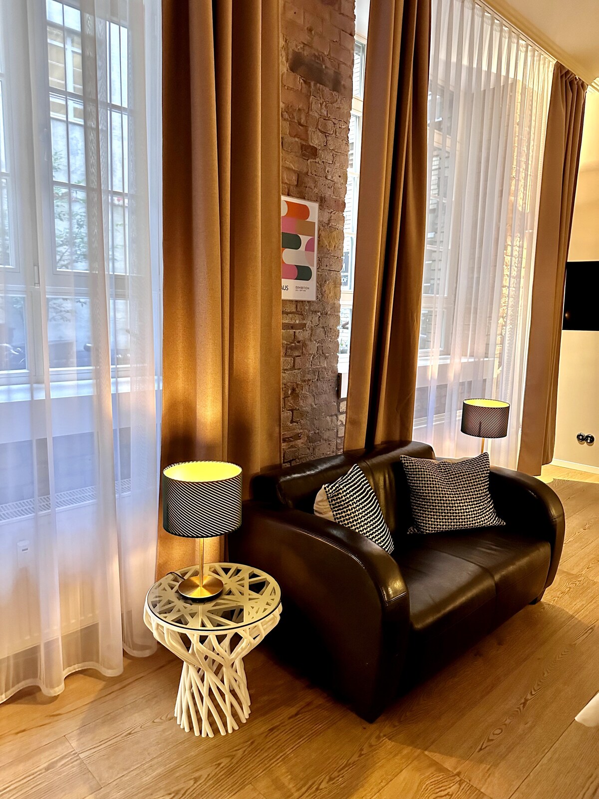 Sahəsi 58 kvadratmetrdən çox olan bu ikinəfərlik otaqda iki 150-179 sm ölçülü çarpayıda dörd böyük yata bilər. Antik və müasir mebellərin vəhdəti bu əsr dizaynına əlavə olunur. Həm otaqlarda, həm də hamam otağında heyrətamiz şəkildə bərpa edilmiş freska və stukko tavanları, eləcə də orijinal döşəmə taxtaları ilə birlikdə tarixi şlaqbaumu geri qaytarır. Diqqətli şəkildə boyanmış otaqlar sürüşən qapı ilə ayrılır və hamam otağı yalnız ikinci otaqdan keçir. Balkon birinci otaqdan əldə edilə bilər.