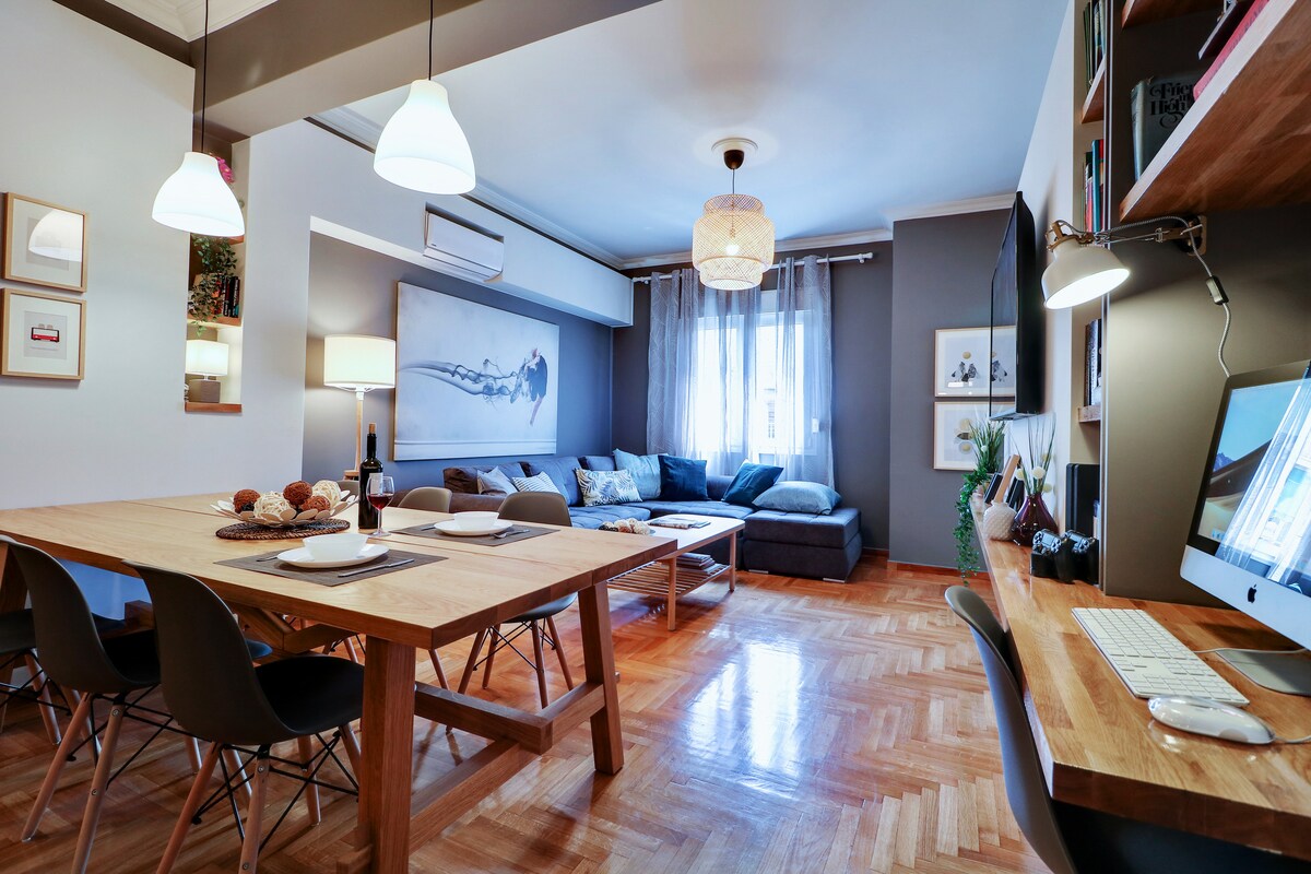 Kypselidə dəbli mebel və ev hissi olan müasir 2 otaqlı mənzil. Cütlüklər, dostlar və ya ailələr üçün idealdır. Paylaşılan imkanlardan zövq alın: idman zalı, iclas otağı, arxa həyət, Akropol mənzərəli dam örtüyü, cakuzi, sauna və açıq havada oturma yerləri. Kafe, restoran və barlarla dolu bədii məhəllədə yerləşir. Tam təmirli 2025-ci il Bauhaus binasında yerləşir. Unikal Afina təcrübəsi!
