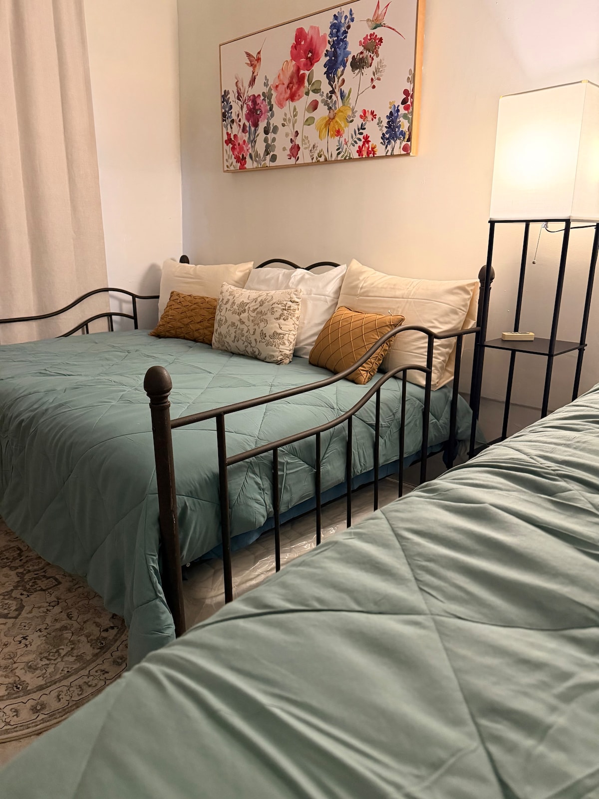 Salam, Alamoda The Loft-a xoş gəlmisiniz ! 400+ kvadrat futluq və tam təchiz edilmiş bu geniş mərtəbə planında dincəlin və dincəlin. O, əmlakımda ikimərtəbəli qarajın üstündə yerləşir. Burada 1 böyük ölçülü çarpayı, dolab, tam ölçülü vanna otağı və çanağı olan mətbəx, 2 yanan soba, soyuducu və Keurig qəhvə maşını var. Həmçinin Smart TV və WiFi var. SİQARET ÇƏKMƏK olmaz. Həmçinin lofta qədər öz şəxsi göyərtəniz və pilləkənə xüsusi girişiniz olacaq.