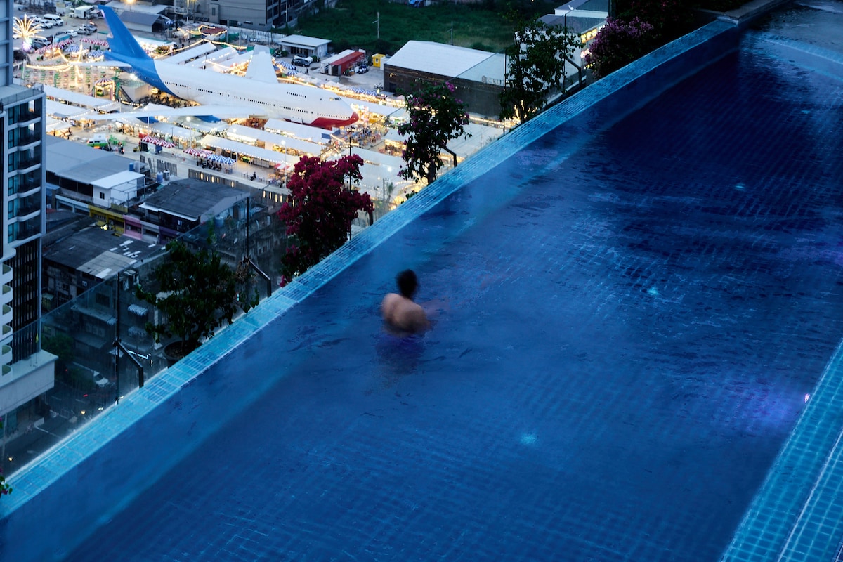 Pattaya市中心网红无边泳池海景公寓|B2G高空城市夜景|步行至海滩、六巷soi6步行街