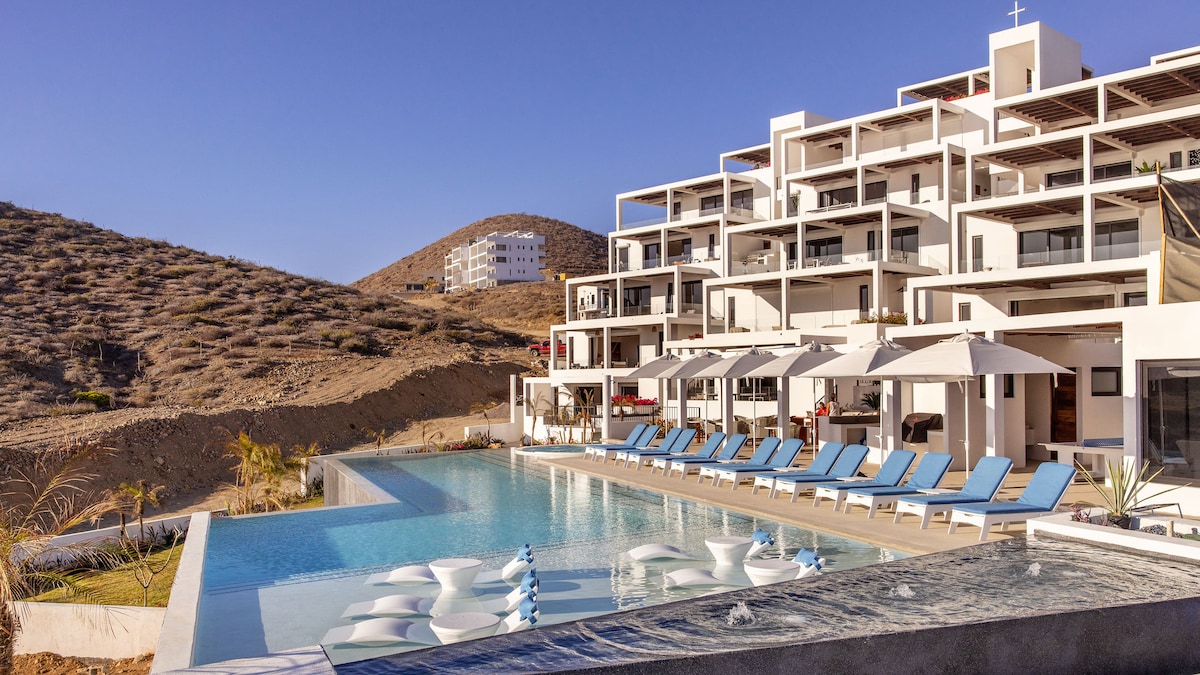 Sizin Dream Oceanfront Getaway - Müasir, Lüks 2BD/2.5BA Condo Cerritos/Todos Santos bölgəsinin sakit bir yamacında yerləşən bu yeni 2024-cü il okean sahili kondominium yüksək səviyyəli otelin həm komfortlarının unikal qarışığını, həm də Bajanın qeyri-adi sərgüzəştlərinə asanlıqla giriş imkanı təklif edir. Nəfəskəsici okean mənzərələrinə, xüsusi verandanızdan epik günəş vannalarına oyanın və qayalıq hovuzda dalın. Tam idman zalı, buxar otağı və damüstü yoqa dekoru kimi imkanlardan zövq alın. Sərgüzəştiniz sizi gözləyir...