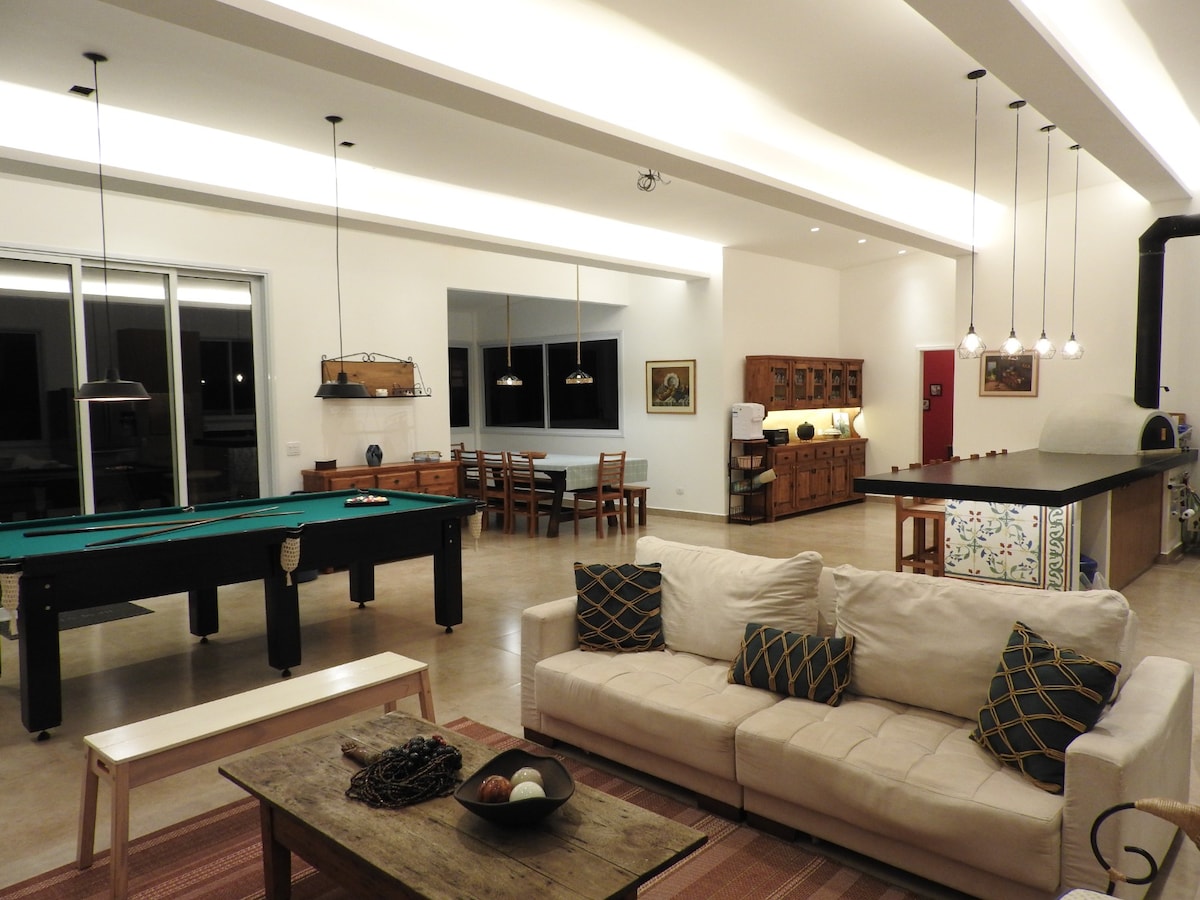 House in a gated community on a 6,000 m² plot. Technology, security, and comfort in the midst of nature! A breathtaking sunset view, and if you’re lucky, you might catch the Brazilian Northern Lights. Interact with our goats and horses, pick fresh vegetables, and enjoy the comfort of our rooms, thoughtfully prepared to welcome our family and closest friends. All rooms are equipped with Starlink internet, home office furniture, air conditioning, a minibar, and a coffee maker.