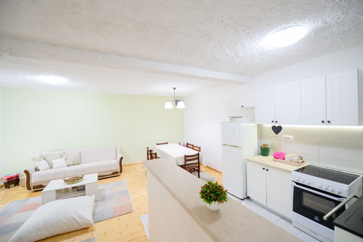 Budvanın ən böyük parkının yanında yerləşən, premium tikilmiş müasir binada yeni rahat və rahat 56 kvm (602 kv fut) mənzil. Çimərlik beş dəqiqəlik məsafədədir, bir çox çimərlik imkanları, barlar və restoranlar var. Mənzil ikinci mərtəbədə yerləşir və arxa həyətlə üzbəüz olduğundan bütün il boyu sakit qonaqlama təklif edir. Ailə yönümlü və tam təchiz olunmuş - 4 nəfərə qədər insanı qəbul edə bilər. Yeraltı qarajda ayrıca parkinq (liftlə -1 mərtəbə).