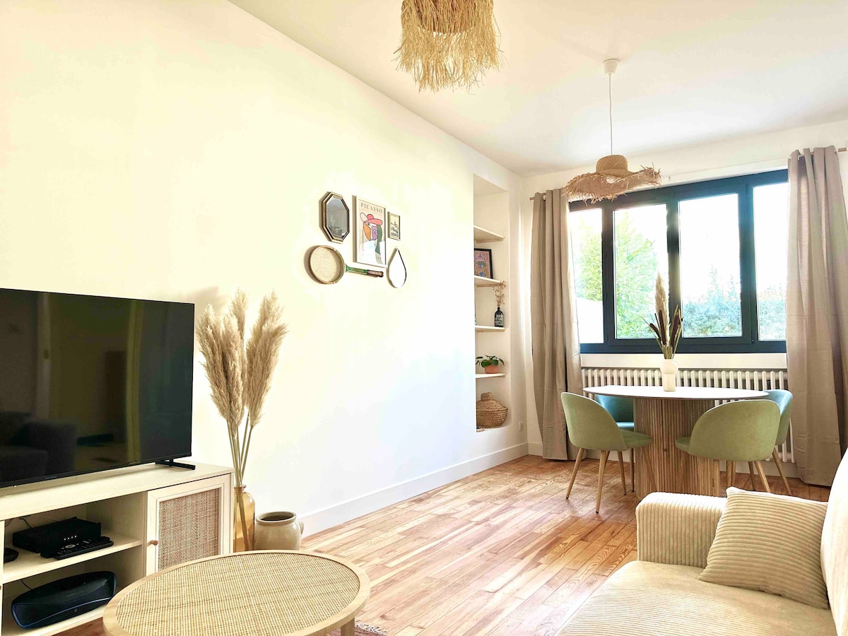 Véritable 2 pièces entièrement rénové. L’appartement lumineux de 38m2, accessible par un escalier d’une quinzaine de marches, se compose d’une cuisine entièrement équipée ouverte sur le salon et le coin repas. Le salon dispose d’un téléviseur. Le logement dispose d’une véritable chambre à part (matelas Queen size 160x200) avec sa petite penderie. Salle de bain avec douche et miroir éclairant + chauffage électrique. Toilettes séparées. Cafetière Nespresso, 2 dosettes offertes.