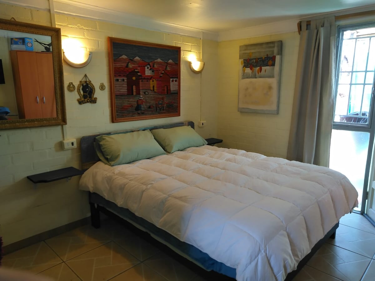 Rahat və komfortlu daxili mənzil (müstəqil). 4 nəfərlik tutumuna malikdir, ümumilikdə iki otağı var, əlavə olaraq hamam və qonaq otağı ~ mebellə təchiz olunmuş yemək otağı var, işıqlı və havalandırılmışdır, paylaşmaq üçün idealdır. Mətbəx təchiz olunub. Əlavə rahatlıq üçün TV kabeli və Wi-Fi daxildir. Mövqe strateji, anbarlara, tibb mərkəzlərinə və supermarketlərə yaxındır. Santyaqo şəhərindən cəmi 23 dəqiqə, hava limanından isə 16 dəqiqə məsafədə rahat və yaxşı əlaqələndirilmiş qonaqlamalar üçün mükəmməldir.