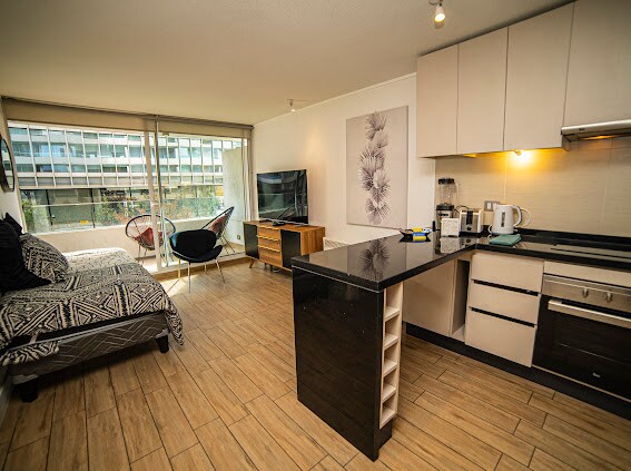 Bu füsunkar studiya mənzili Santyaqoda, klinikalara, universitetlərə, ən yaxşı şəhər ticarət mərkəzlərinə və xizək mərkəzlərinə yaxın növbəti qonaqlamanız üçün mükəmməl yerdir. Mənzildə qonaqlamanızı rahatlaşdırmaq üçün lazım olan hər şey, kondisioner, təchiz olunmuş mətbəx, televizor, Wi-Fi, terras və parkinq var. Binada idman zalı, açıq hovuz və camaşırxana var. İstirahətiniz üçün bu sakit və düşünülmüş məkanda dincəlin.