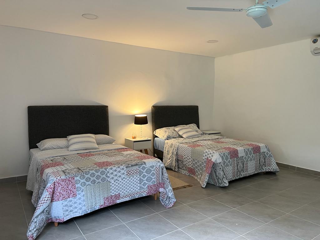 Relájate con toda la familia en este alojamiento donde la tranquilidad se respira... casa de 2 habitaciones, cama matrimonial en ambas habitaciones, una de ellas en suite, además de baño familiar quincho con parrilla, 1/2 baño, amplio patio, piscina que simula playa con arena real alrededor, vegetación exuberante alrededor de la propiedad, un oasis en medio de la vegetación