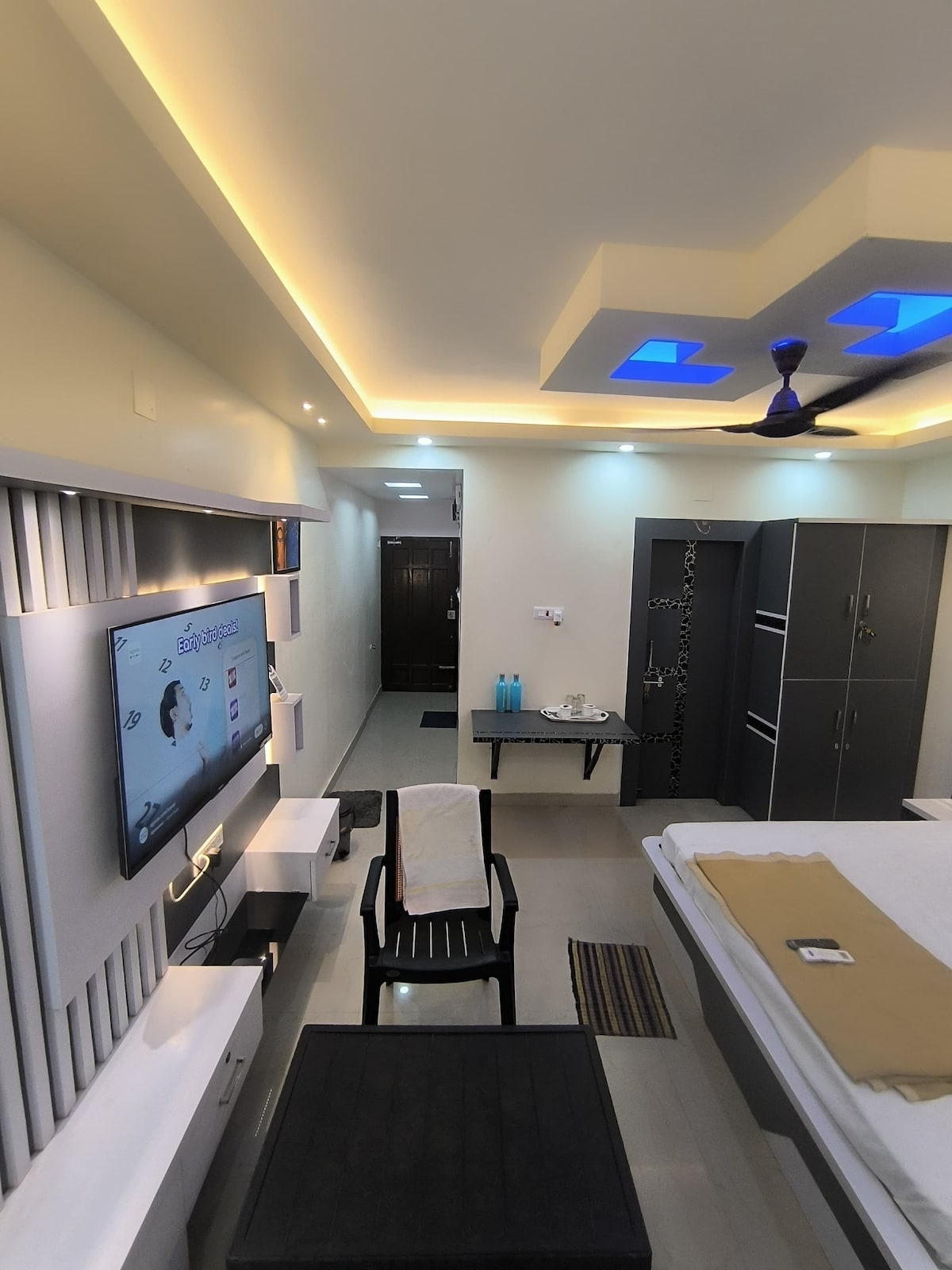 Pay 💰 Less Stay More Stay just 600 meters from Narendra Pokhari and 2.5km from Jagannath Temple and 15 mins from sea beach. Enjoy a spacious bedroom with a king-size bed, a cozy living room, and a fully equipped kitchen. Complimentary Wi-Fi and parking are included. Don’t miss the stunning Jagannath Temple views from the terrace. For added convenience, scooty rental is available at very minimal prices . Ideal for families, couples, and business travelers. Book now for a memorable stay!