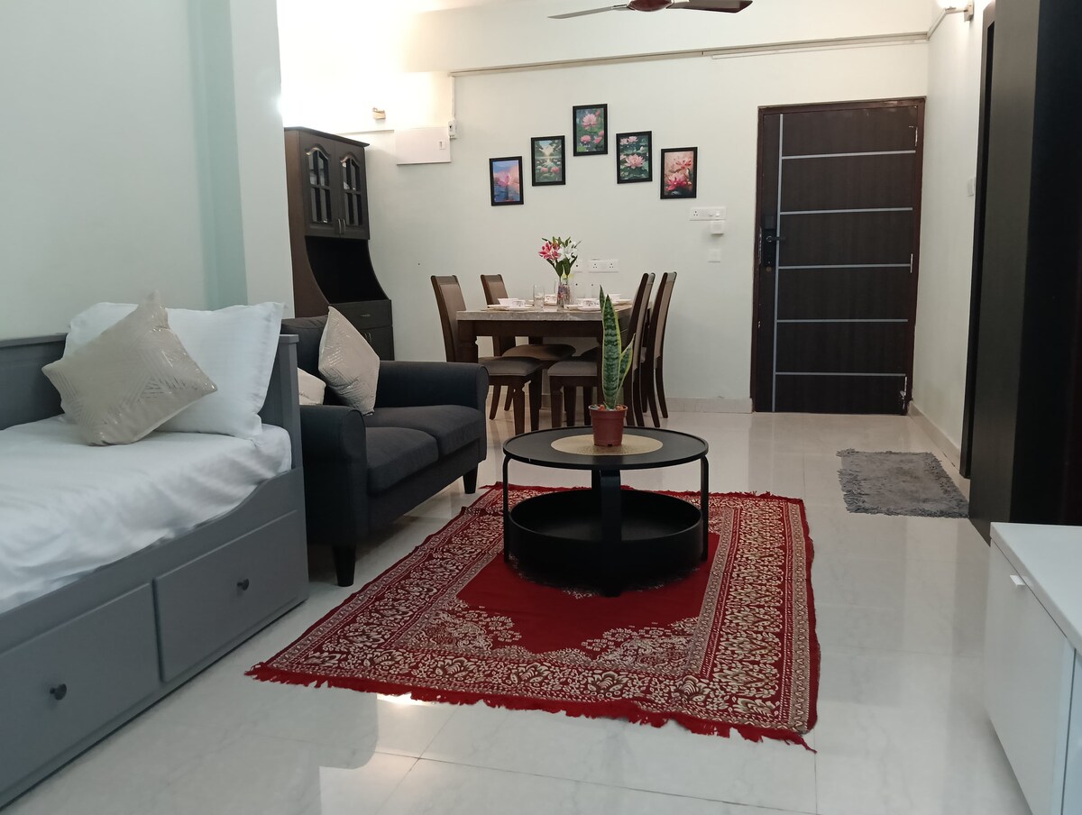 Ailəvi qonaqlamalar üçün mükəmməl olan zərif 2 BHK mənzilimizə xoş gəlmisiniz! Geniş qonaq otağı da daxil olmaqla, tam kondisionerli otaqlarda iki rahat IKEA çarpayısından və 150-179 sm ölçülü divan çarpayıdan zövq alın. Açıq, təmiz vegetarian mətbəxi ehtiyaclarınız üçün tam təchiz olunub. Mavi Bayraq çimərliyindən cəmi 600 metr və Şri Caqannat Məbədindən 1,5 km məsafədə yerləşən bu yer uzunmüddətli qonaqlamalar üçün ideal məxfilik və rahatlıq təklif edir. Geniş, baxımlı yollarda yerləşən istirahət və rahatlığın mükəmməl qarışığını təcrübədən keçirin!