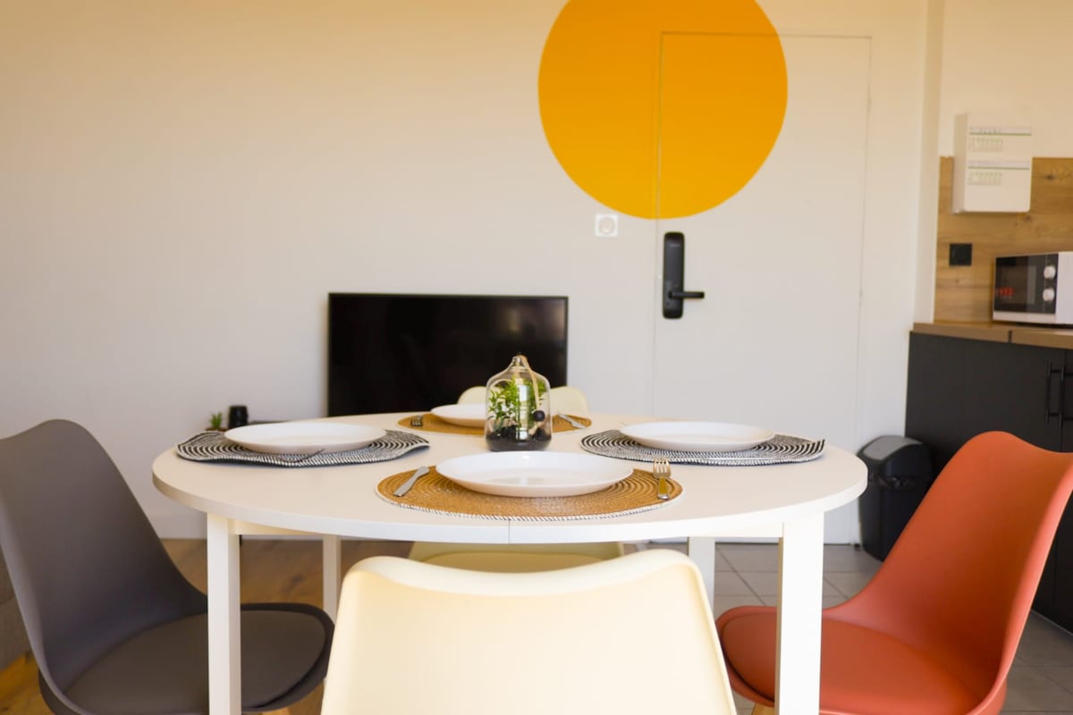 - Gəlin və Makondakı gözəl "Le Classik" studiyasında qalın! - Heç nəyi qaçırmadığınıza əmin olmaq üçün tam təchiz edilmiş və təchiz edilmiş fərdi yaşayış yerində 30 m2-lik studiya. Burada özünüzü evinizdəki kimi hiss edəcəksiniz. - Tamamilə təhlükəsiz yaşayış yerinin sakitliyi və avtomobil yolunun çıxışları, qatar stansiyaları, mağazalar və restoranlar da daxil olmaqla bütün imkanlara yaxın olması sizi təəccübləndirəcək. - Yaşayış yerindən əlavə, istifadəniz üçün PULSUZ və təhlükəsiz ŞƏXSİ parkinq də mövcuddur. - YÜKSƏK SÜRƏTLİ Wİ-Fİ
