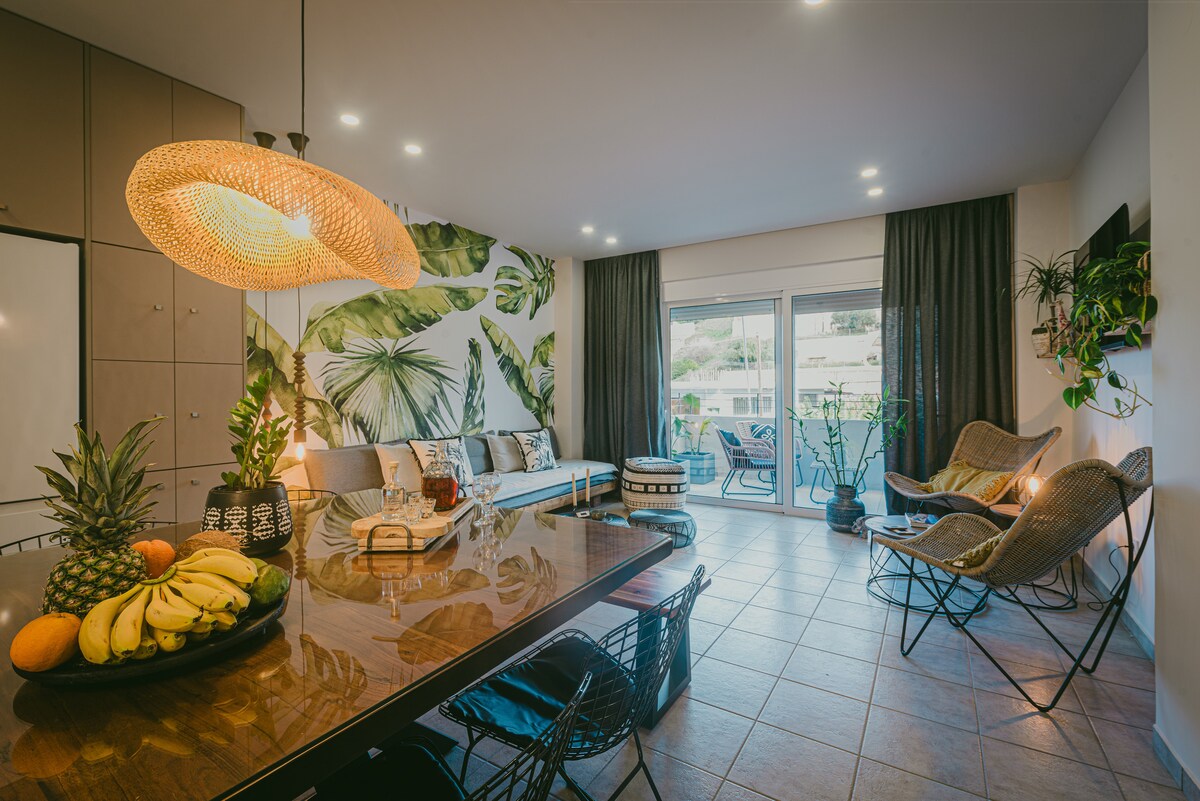 The apartment Anaxagoras consists of an open-plan residential complex and is characterized by an imposing original Venetian arch, which separates the kitchen and living area from sleeping. It has direct access to your (private) garden with barbecue and large dining table with sea view. Everything has been renovated with lots of love for the traditional details in 2017. Here you can inhale a touch of Cretan history in a unique and comfortable atmosphere.