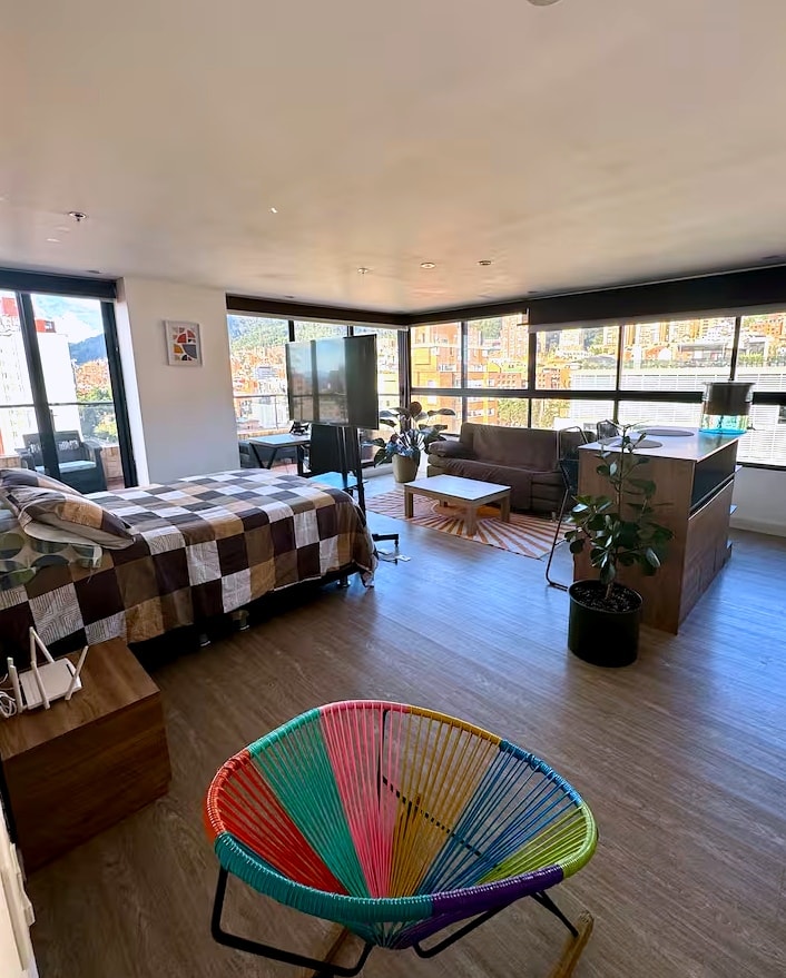 Qısa və ya uzun müddət ərzində mükəmməl rahat qalmaq üçün dəbli yeni yer. Burada gecə-gündüz gözəl dağlara və Boqotanın mənzərəsinə baxan unikal və unudulmaz təcrübə yaşamaq üçün ehtiyacınız ola biləcək hər şey aydın şəkildə görünür. Əla 150-179 sm ölçülü çarpayı, divan-çarpayı, əla hamam otağı və yemək bişirməyi sevənlər üçün bunu asanlaşdırmaq üçün hər cür qadcet var. Beləliklə, Teatron kimi ən yaxşı klubları, qrt-barları və alış-veriş yerlərini tapa bilərsiniz.