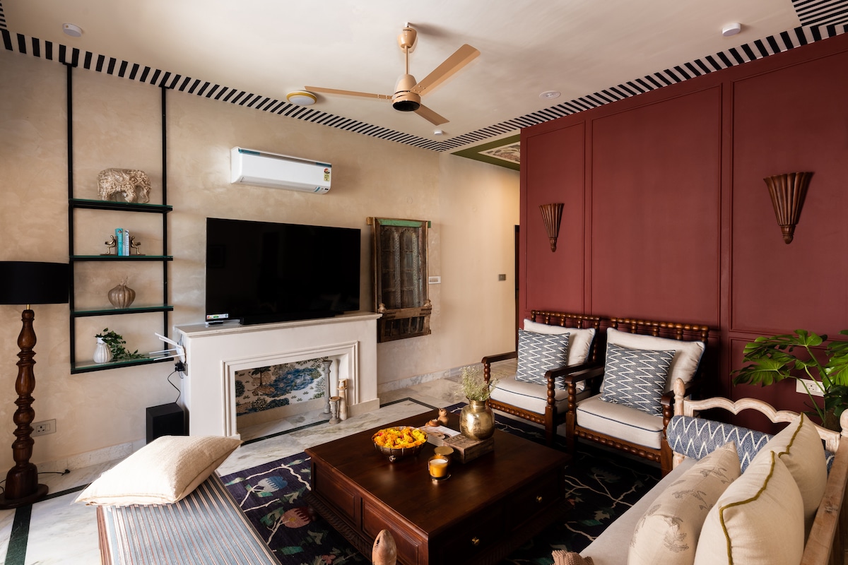 The Shri Lalluji Suite-ə xoş gəlmişsiniz. Bu, sadəcə bir evdə deyil, bir eskizin içində yaşadığınız, əl ilə boyanmış, 1 yataq otaqlı, qeyri-adi bir məkanıdır. Hər bir divar, tağ və çərçivə ənənəvi Racastan miniatür freskası ilə ağ-qara rənglərdə dizayn edilib. Cütlüklər, dizayn sevərlər və ləzzətli səyahət edənlər üçün mükəmməl məkan olan bu süita Caypurun kral irsini ağıllı müasir rahatlıqla birləşdirir.