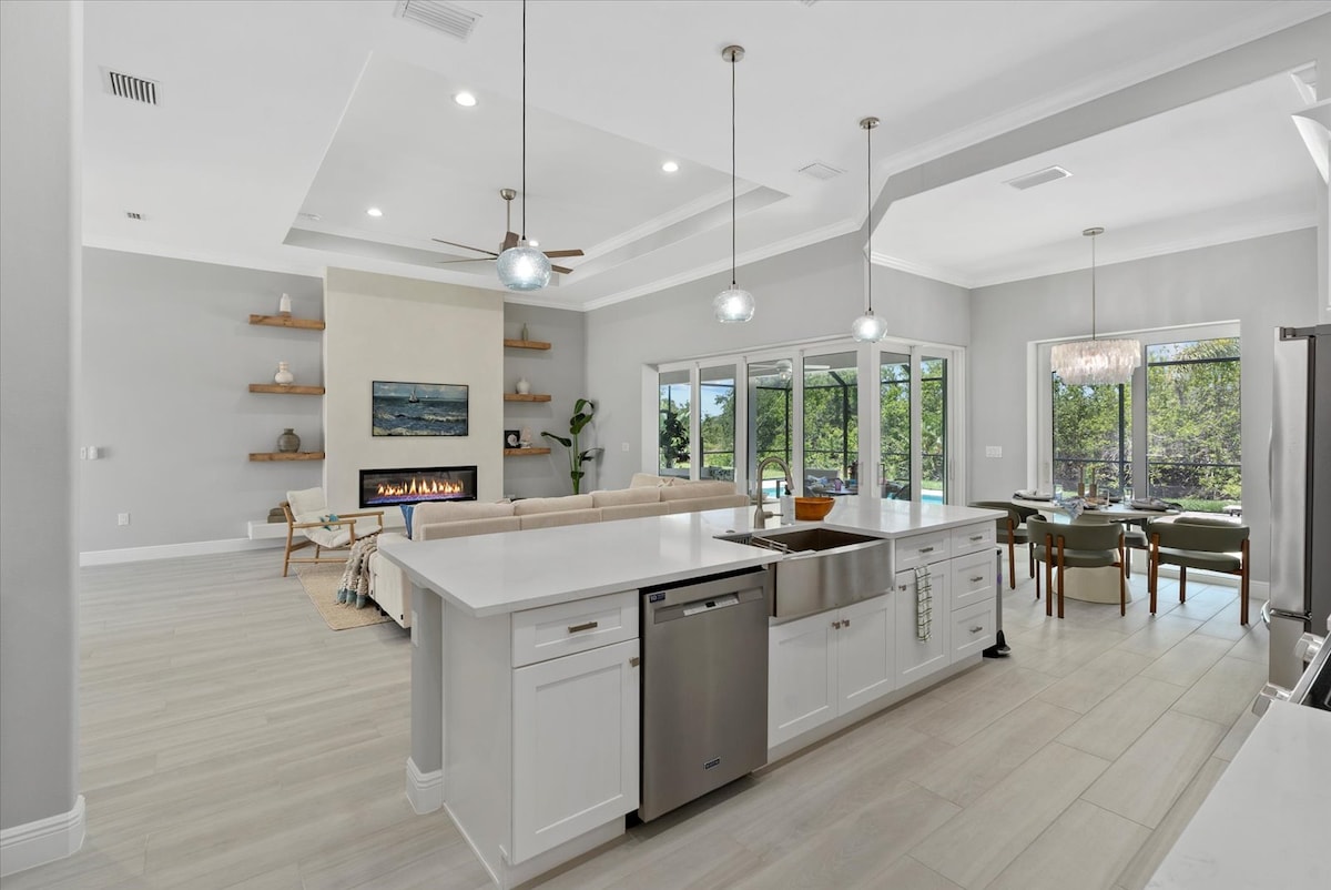 *İSTİLƏNMƏLİ GÜNƏŞ HÖVZƏSİ* Florida ştatının Enqlvud şəhərindəki tropik oazisinizə xoş gəlmisiniz! Çölə çıxın və heyrətamiz açıq hava məkanı ilə heyrətlənməyə hazırlaşın. Yerdəki günəş paneli ilə istiləşdirilən hovuz sizi isti Florida günlərində sərinləndirici bir dalışa çağırır. Səma hər axşam canlı rənglərdən ibarət kətana çevrildiyi üçün sevimli içkinizi içdiyinizi təsəvvür edin. Balıq ovu həvəskarları üçün gəlişinizi xüsusi dok gözləyir. Xəttinizi atın və arxa həyətinizin rahatlığından gölün rahatlığından zövq alın.