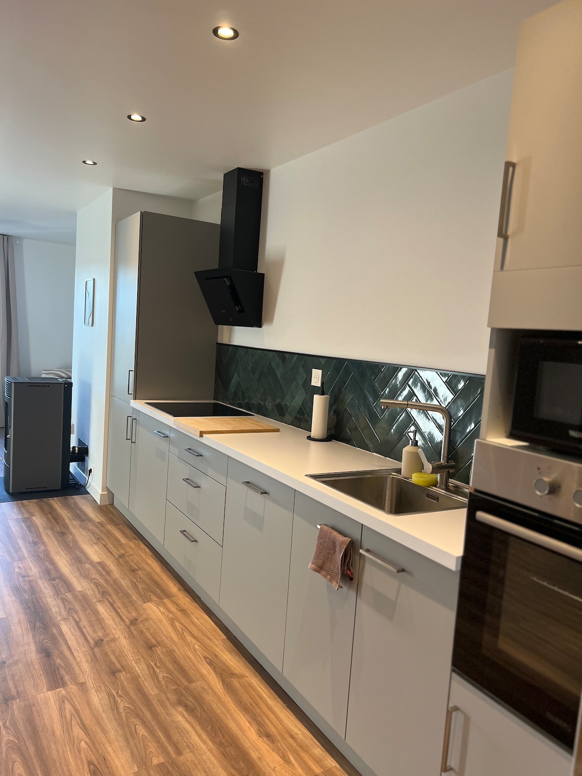 Mavi qaçış və V50-dən 200 m məsafədə fərdi evin döşəməsində yerləşən gözəl müstəqil mənzil. Açıq havada pilləkənlə giriş (əlilliyi olan insanlar üçün uyğun deyil). Gəzinti və ya velosiped sürmək üçün idealdır. Ayrıca parkinq pulsuzdur. Ev qaydalarına/əlavə qaydalara baxın. Mövcud qəhvə maşını , çaydan, Nespresso qəhvə maşını, toster, mikrodalğalı soba .Draps və dəsmallar təmin edilir .