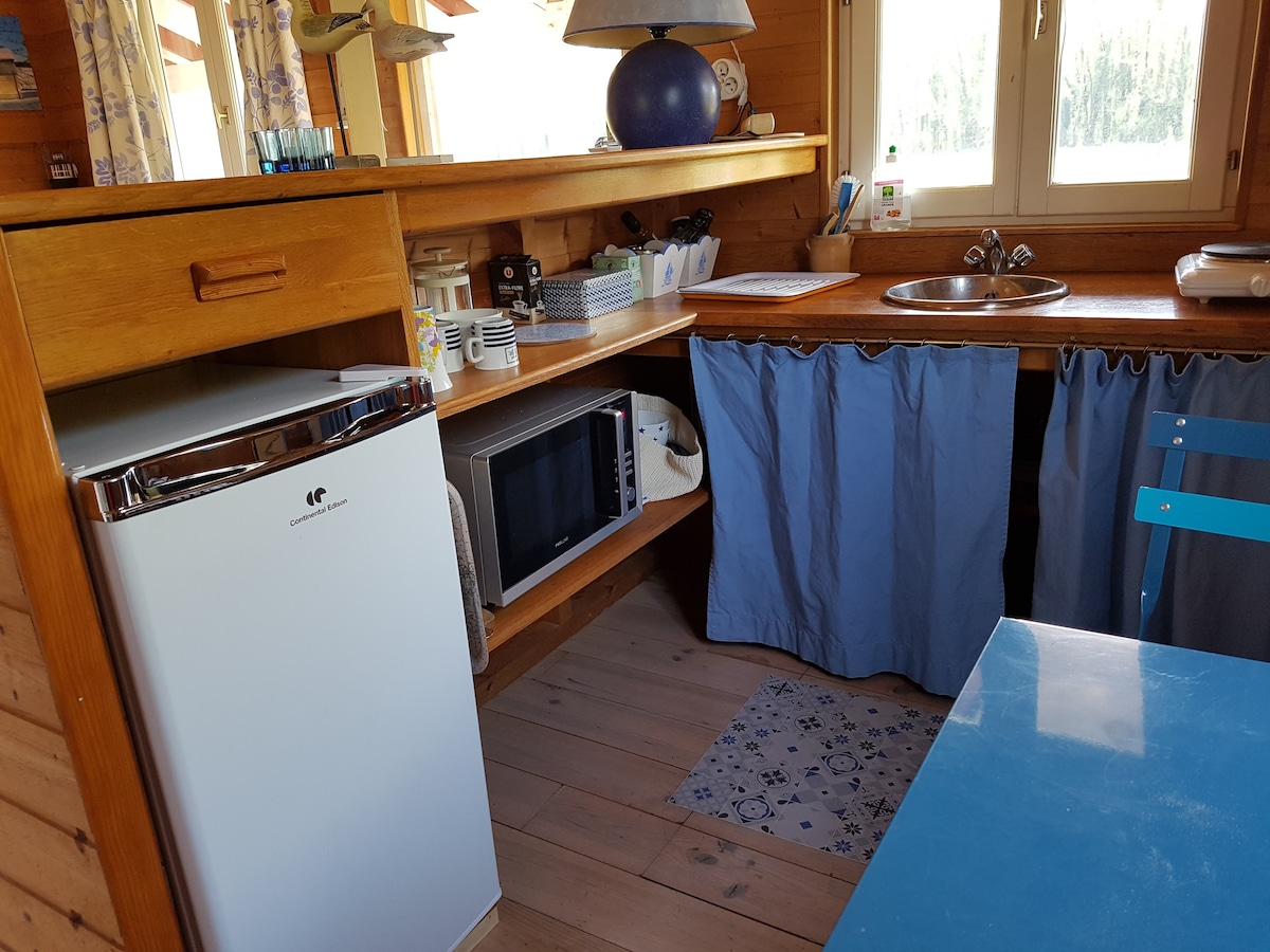 Un dépaysement total à 1h de Paris, entre Chartres et Maintenon. Voiture indispensable , la gare d'Epernon est à 8km les courses à 4km Le cottage est indépendant dans jardin spacieux, tout en bois, avec terrasse au bord de l'eau. Logement confortable bien isolé et chauffé ,avec lit double en140, salle bain, toilettes et coin cuisine bien équipé Un coin de paradis classé 2 étoiles. Si vous n'avez pas de voiture mais des vélos vous pouvez venir en train avec vos vélos, jusqu'à Maintenon.