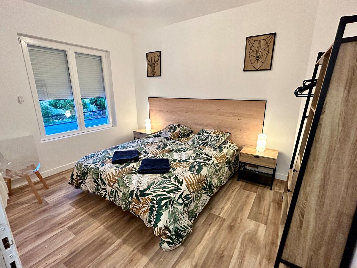 Yenicə təmir edilmiş və rahat qonaqlama üçün ideal olan L'Oasis studiyamıza xoş gəlmisiniz. Sakitcə yaşıl məkana açılan mənzərəli yerdə təchiz olunmuş mətbəx, 150-179 sm ölçülü çarpayı, kondisioner, Smart TV və lifli Wi-Fi təklif olunur. Ailələr (beşik, oyunlar) və peşəkarlar üçün uyğundur, paylaşılan balkonu və pulsuz parkinqi var. Futuroskop, Akvaskop və Arenadan 5 dəq məsafədə və mağazalara yaxın məsafədə. Poitevine tətilinizi tezliklə bron edin.