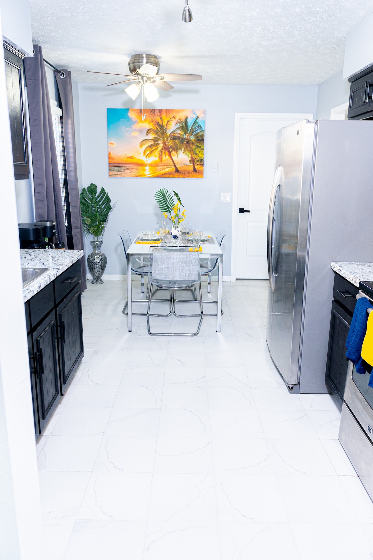 The Palm Oasis Retreat is minutes from Ft. Benning and the Downtown Columbus area. This property has large evergreen palm trees that will make you feel like you are on your own island. The property has been renovated to a stylish modern inspired retreat. Two spa like walk-in showers. Three bedroom, two bath home creating a relaxed environment for you and your family's stay. Flaunting plenty of amenities for yourself and your family members. Versace robe and slippers not available for guests.