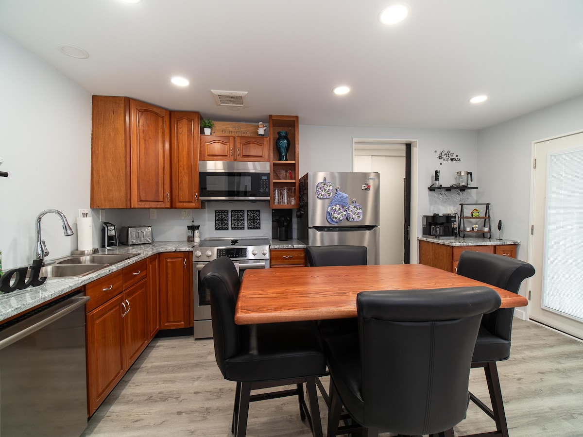 Make some memories at this unique and family-friendly retreat in beautiful Bemus Point! The Luxury Suite at The Cottages is a stylish 3 bedroom 2 bathroom unit featuring an indoor sauna in the master bathroom and a hot tub off the back deck. Our goal is for our guests to feel relaxed and rejuvenated at this four season getaway.