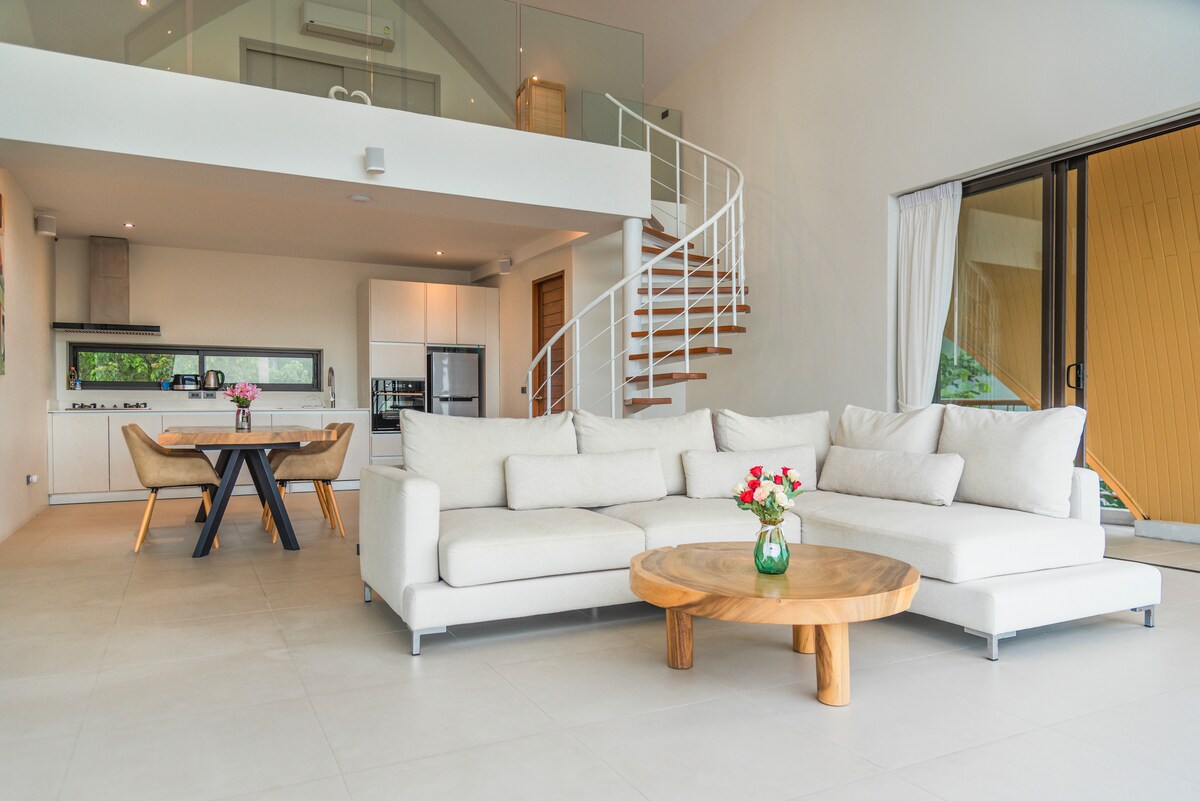 Koh Samui adasının ən yaxşı mənzərələrindən bir neçəsinə sahib, mərkəzi mövqedə yerləşən və bu yaxınlarda təmir edilmiş 2 yataq otaqlı villada zövqlə dincəlin. Damüstü terras və şəxsi duzlu su hovuzu 2 yataq otağı 3 hamam otağı Şəxsi parkinq Ayrıca sonsuzluq hovuzu 24 saat kommunal idman zalı Çox sürətli ayrıca lifli Wi-Fi Soba, Qəhvə maşını, Mikrodalğalı soba, Paltaryuyan maşın, qabyuyan maşını olan böyük mətbəx Qonaq otağı və yataq otaqlarında smart televizorlar var Cakuzi Yapon avtomatik tualetləri Bütün villa üçün su filtrasiya sistemi