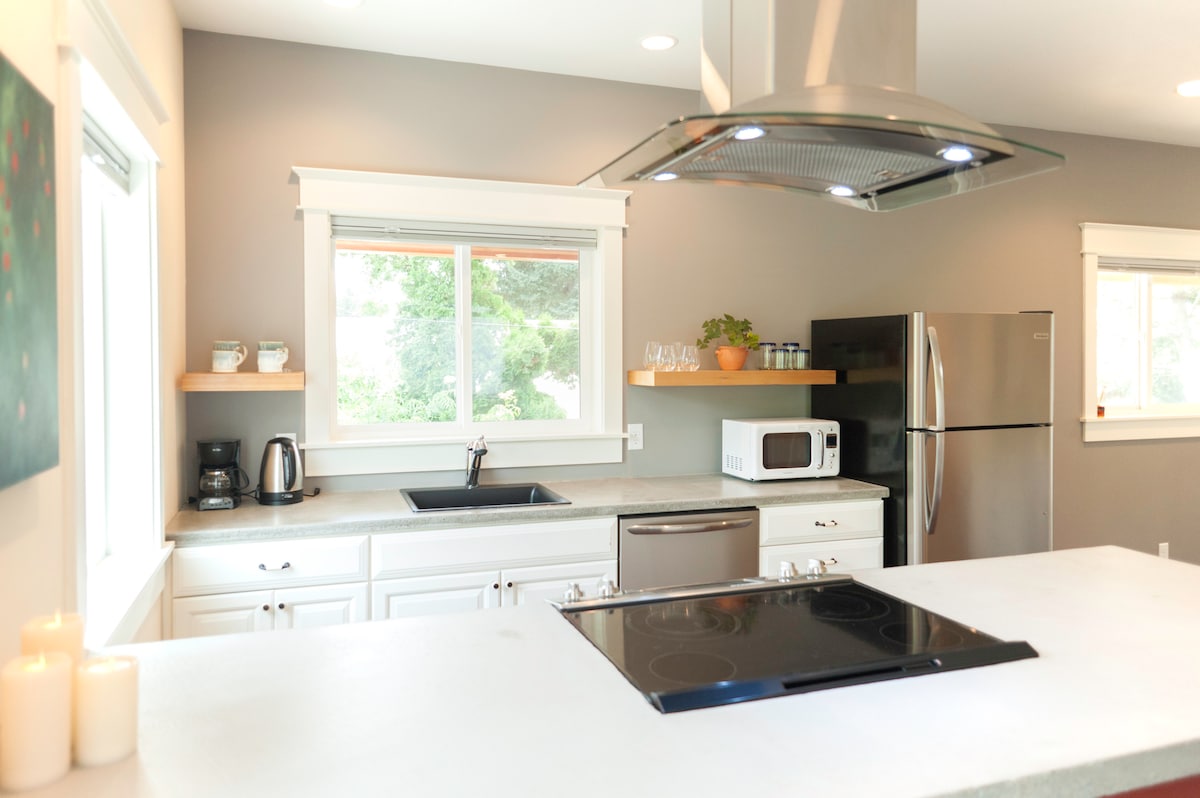 Memarımız onu saxlamazdan və onu yazmaq, oxumaq və napping etmək üçün istirahət yerinə çevirməzdən əvvəl "The Shedd" idi. 800 kv. metrlik qonaq evində yataq otağı, hamam otağı, duş kabinəsi, kiçik mətbəx, yemək guşəsi, oturma sahəsi, masa, Wi-Fi və A/C var. Kəndə cəmi 7 dəqiqəlik məsafədə olsa da, yerimiz səhraya qədər uzanır, Tumwater Mountain və Icicle Ridge-in gözəl mənzərəsi var. Hər şeydən əvvəl, The Shedd-in bir çox pəncərəsi və çoxlu təmiz havası və təbii işığı var.