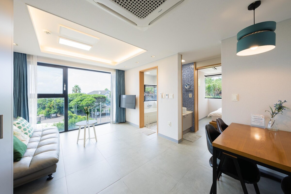 L301-ə xoş gəlmisiniz Bura Seoqvipo, Jeju adasının cənub hissəsində yerləşən yeni tikilmiş, müasir və bədii bir yerdir. ▶Hwangwooji Sahili (şnorkel və ya üzgüçülük) : avtomobillə 3 dəq ▶Olle bazarı: avtomobillə 10 dəq ▶Jeju Olle 7 kursu: piyada 2 dəq ▶Mall(E-mart), Kafe, Restoran və s: maşınla və ya piyada 5 dəq 1 həftədən çox qalanlar üçün♥ 10% əlavə endirim. Bir ay(maksimum) qalanlar üçün ♥ 25% əlavə endirim.