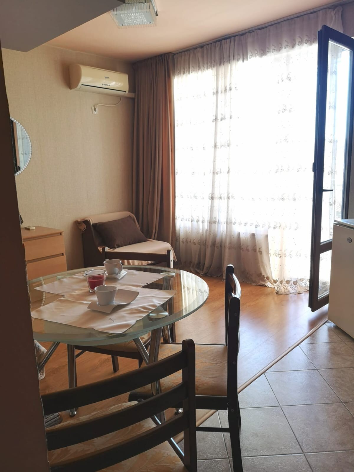 Burqas şəhərinin mərkəzində, çimərlikdən cəmi 5 dəqiqə (350 m) məsafədə müasir və rahat mənzil. Yumşaq işıqlandırması olan dəbli yataq otağı, rahat divan, ağıllı televizor, kondisioner və sürətli Wi-Fi. Mətbəx soba, mikrodalğalı soba, soyuducu və yemək sahəsi ilə tam təchiz olunub. Hamam otağı təzə və işləkdir. Restoran, mağaza və nəqliyyatın yaxınlığında yerləşən mənzil — çimərlik istirahəti, romantik qonaqlama və ya uzaqdan işləmək üçün mükəmməldir.