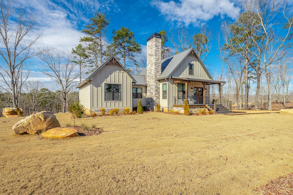 Come experience Weiss Lake at this beautiful lakefront property. It's surrounded by beautiful acreage, woods, and BREATHTAKING unrestricted lake views! Play corn hole, life size chess, take a dip in the pool or hot tub, play in the sand area or on the playground, make some delicious food on the grill, cozy up by the fire pit and roast some s'mores, swim or kayak in the cleanest water on Weiss Lake, watch AMAZING sunsets! SO much to do on property!