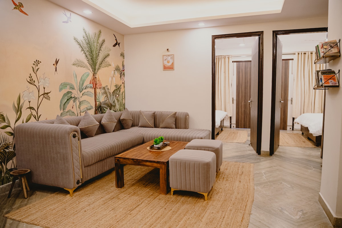 Cənubi Dehlidə Dəbli Qonaqlamalarda Rahat Qonaqlamalara Xoş Gəldiniz Hamını salamlayırıq - Seçilən cəhətlər - Çhatarpurda 1BHK mənzil - 4 nəfərə qədər qonaq yerləşdirir. - Hava limanından 30 dəqiqə - Çhatarpur metrosunun yaxınlığında - Həm istirahət, həm də işgüzar səyahətçilər üçün əlverişlidir. Əsas İmkanlar : Wi-Fi Kondisioner Təzə döşəkağı-dəsmal dəsti Dəsmallar Kraliça ölçüsü və Divan Çarpayı Ağıllı TV Böyük Güzgü sahəsi Tam Doldurulmuş Mətbəx Tualet ləvazimatları (şampun, tualet kağızı, əl-üz yuma və s.)