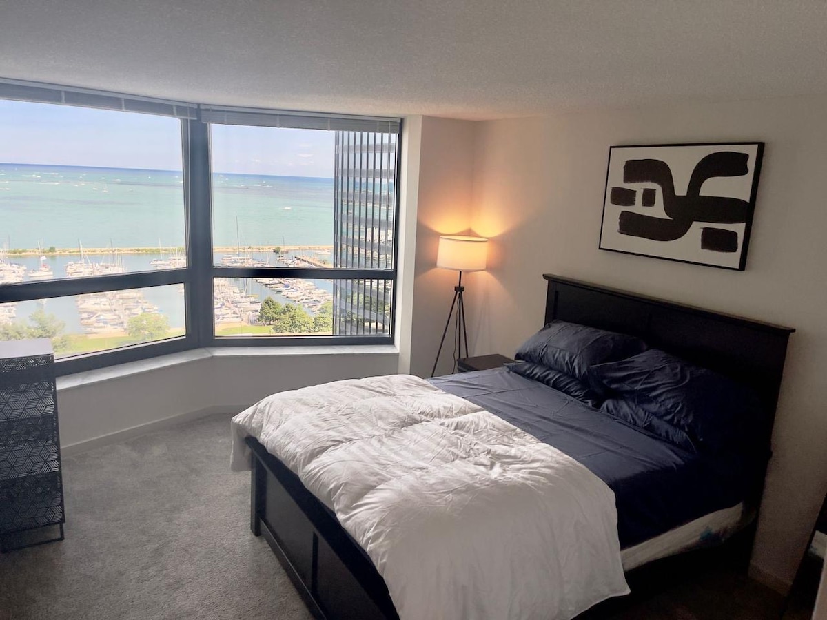 Çikaqonun mədəni, tarixi və işgüzar görməli yerlərinin mərkəzində yerləşən bu dəbdəbəli 2 otaqlı mənzil qonaqlara istər iş, istərsə də oyun üçün yol boyu evdəki bütün rahatlığı təklif edir. Gəzinti məsafəsində dünya şöhrətli görməli yerlər var: Millennium Park, The Bean, Navy Pier, Riverwalk, Soldier Field, The Field Museum və s. Bundan əlavə, qonaqlar sadəcə "L" qatar dayanacağından bir neçə blokdan ibarətdir və bu, sərnişinləri şəhərdə arzu edə biləcək hər yerə daşıyacaq.