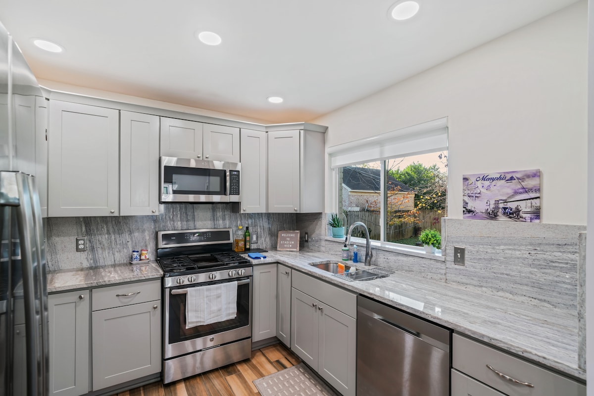 HGTV-nin Coanna Gaines Fixer Upper-dən dizayn ilhamı ilə təmir edilmiş rahat istirahət yerimizə xoş gəlmisiniz. Rahat otaqların füsunkarlığından zövq alın və böyük göyərtədə dincəlin. Bütün Memfisin təklif etdiyi mərkəzi mövqe. Mükəmməl tətiliniz! ~2 çarpayı 150-179 sm ~Hasarlanmış Həyət ~Veranda w/ Qril ~Lifli İnternet ~Roku televizorları ~Oyunlar ~Tam Doldurulmuş Mətbəx Hava limanına ~5 mil məsafədə Beyl Küçəsi/Şəhər Mərkəzinə/Vətəndaş Hüquqları Muzeyinə ~4 mil Qreyslend şəhərinə ~6 mil məsafədə Azadlıq qabına ~2.5 mil ~Qapalı parkinq